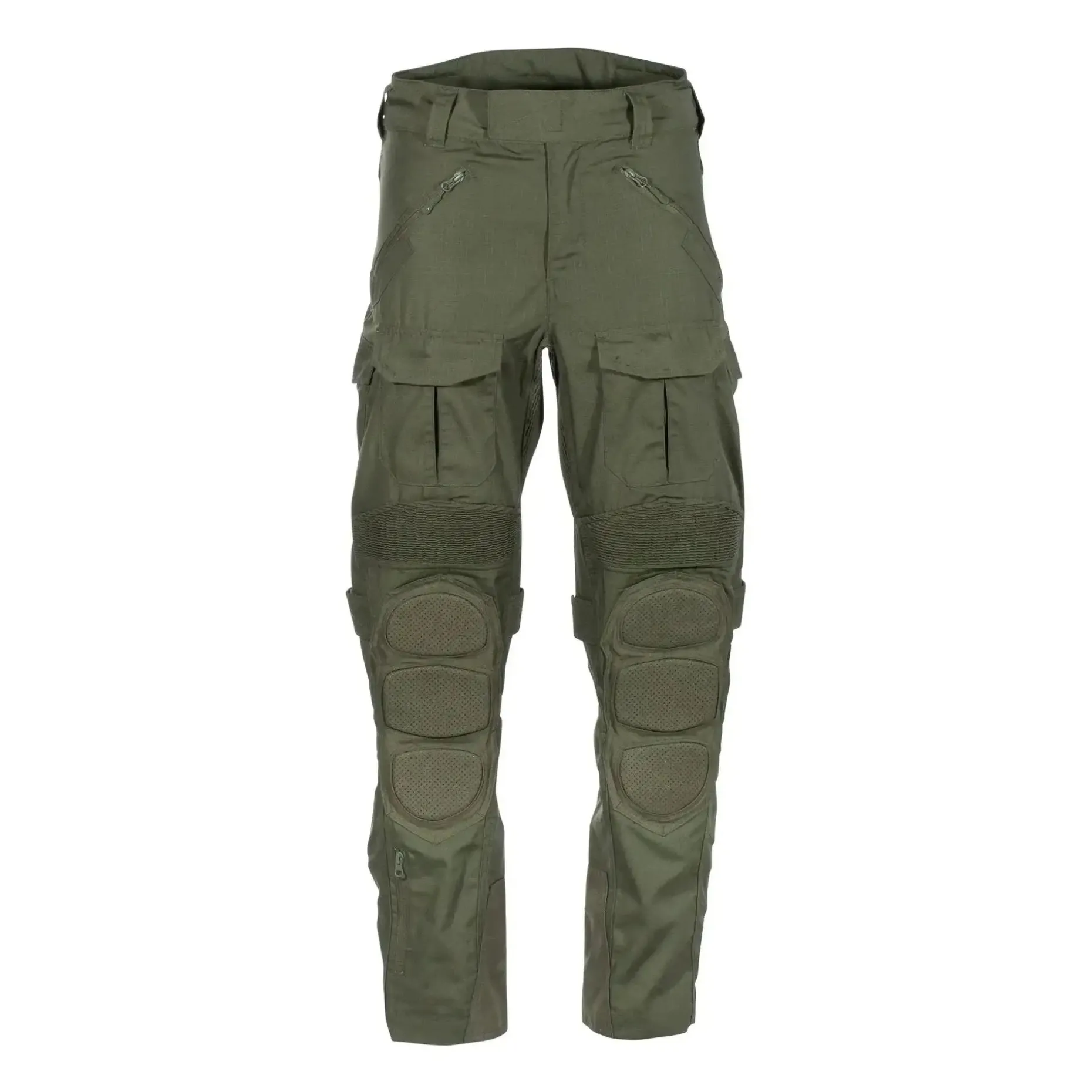 – 2 aufgesetzte Oberschenkeltaschen mit Patte, Klett und Kordelzug