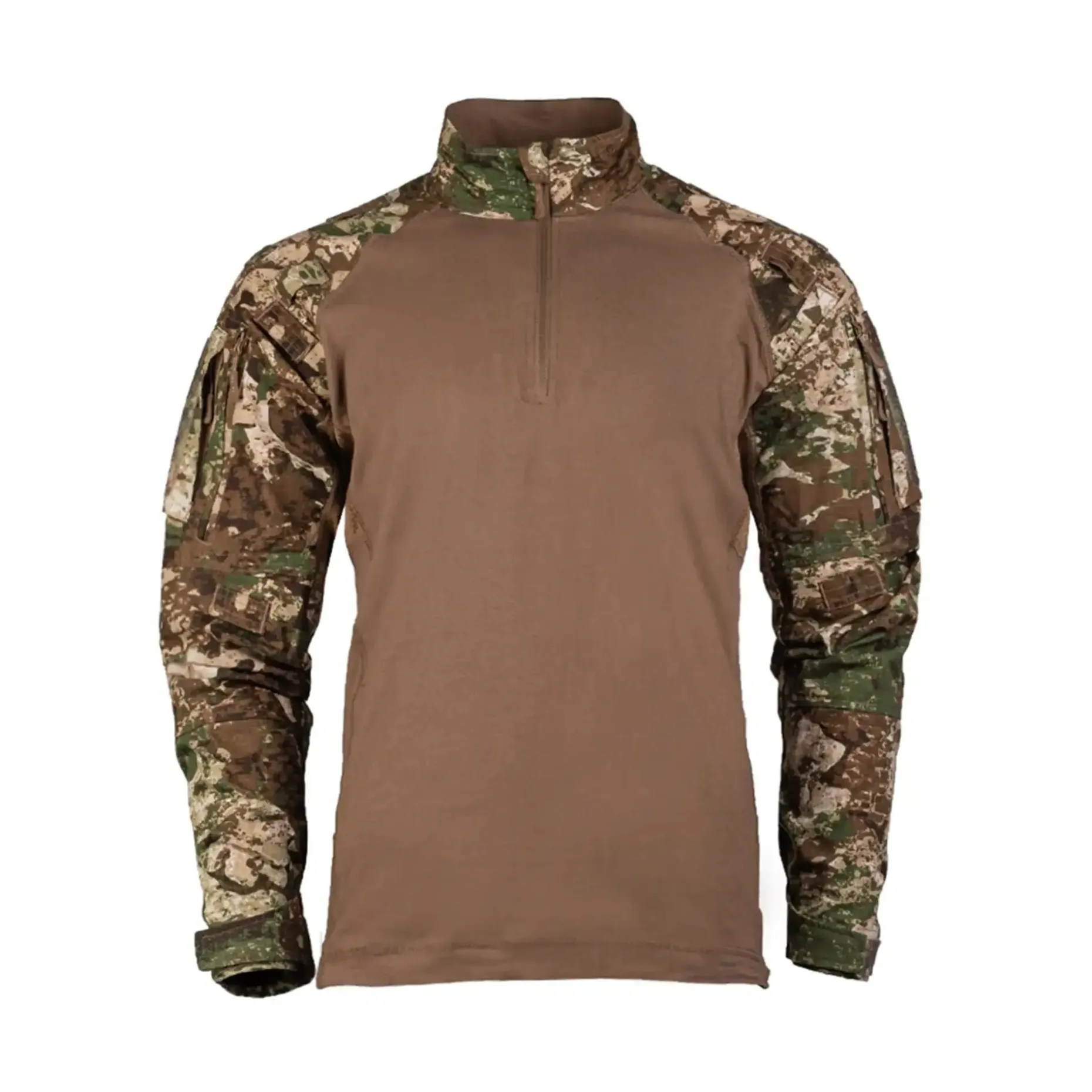 Der hoch geschlossene Kragen mit Kinnschutz, die verstellbaren Ärmelbündchen sowie Ellbogenverstärkungen mit Protektor-Aufnahme machen dieses Feldhemd besonders einsatztauglich. Vier Reißverschlusstaschen an den Oberarmen, große Klettflächen und diverse Befestigungsschlaufen bieten Dir individuelle Anpassungsmöglichkeiten – z. B. für Tarnmaterial oder Patches. Perfekt kombinierbar mit Plattenträgern oder Chest Rigs – dieses Hemd ist gemacht für Bewegung, Tarnung und taktischen Vorsprung.