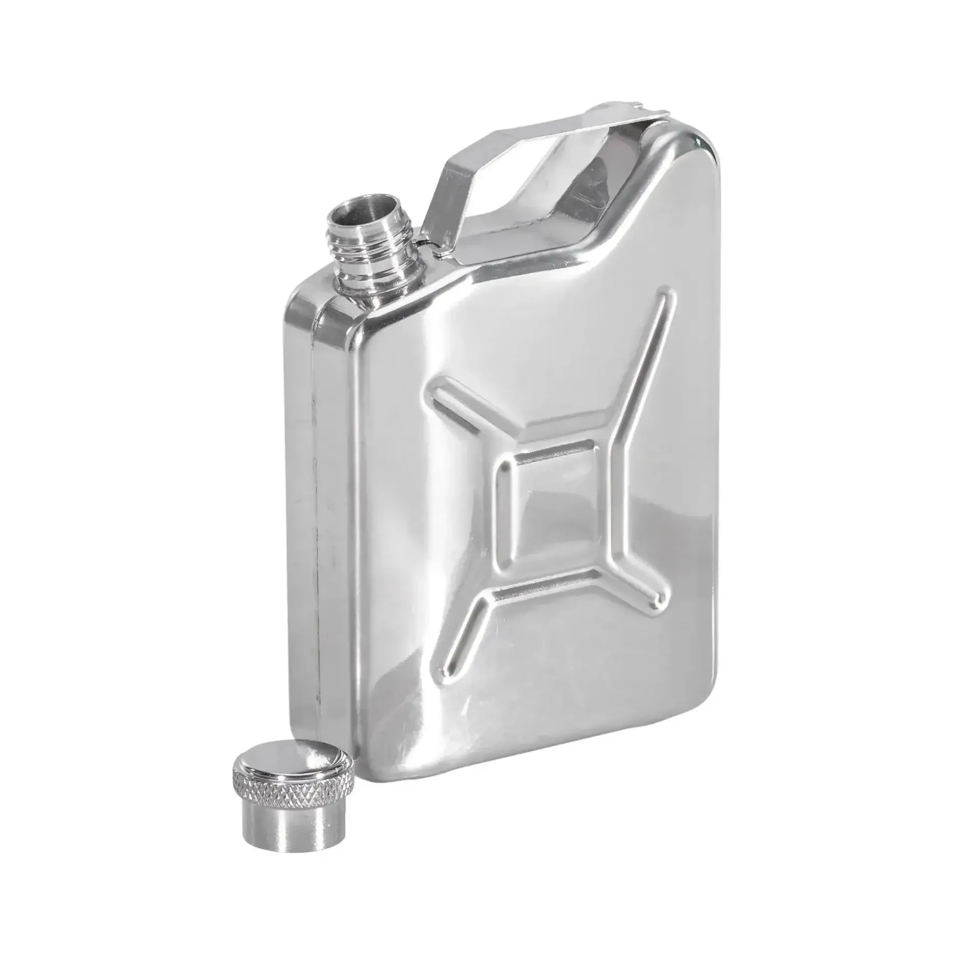 Kleiner Flachmann in Kanisterform aus poliertem Edelstahl – kompakt und einzigartig