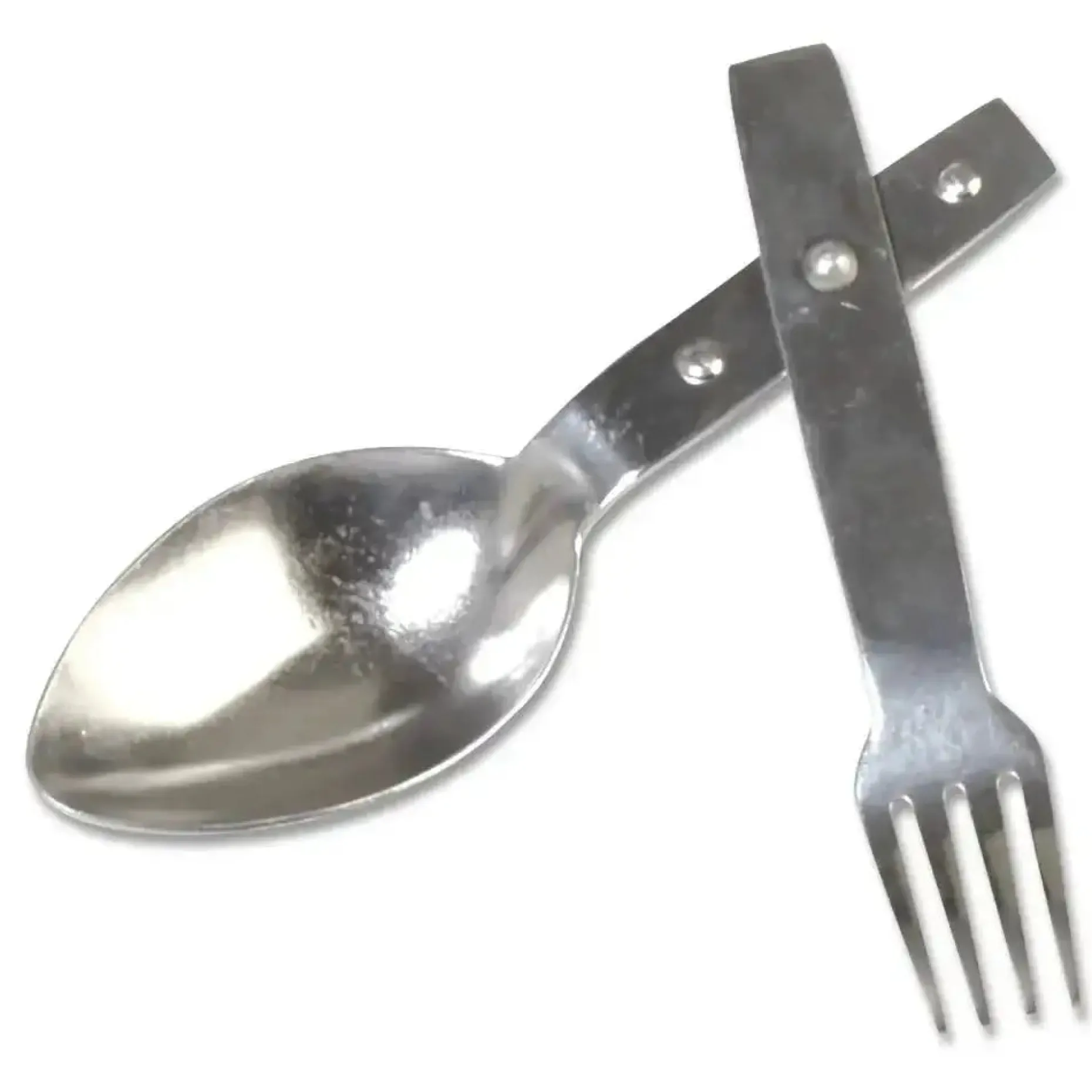 Dieses praktische Essgeschirr lässt sich platzsparend zusammenklappen und ist bei Bedarf stets schnell einsatzbereit. Kombination aus Gabel und Löffel.