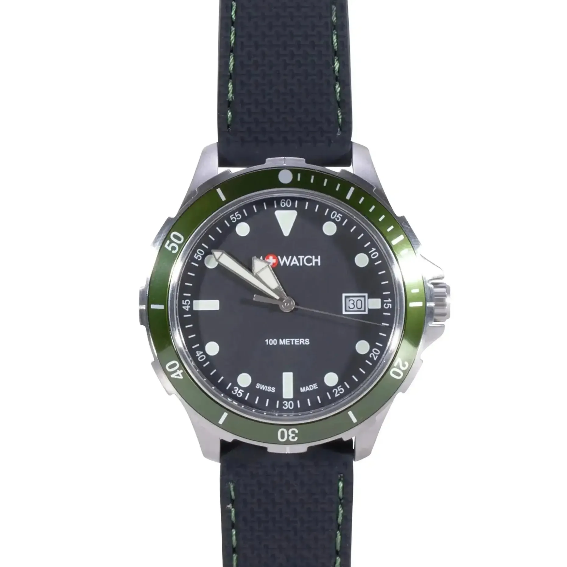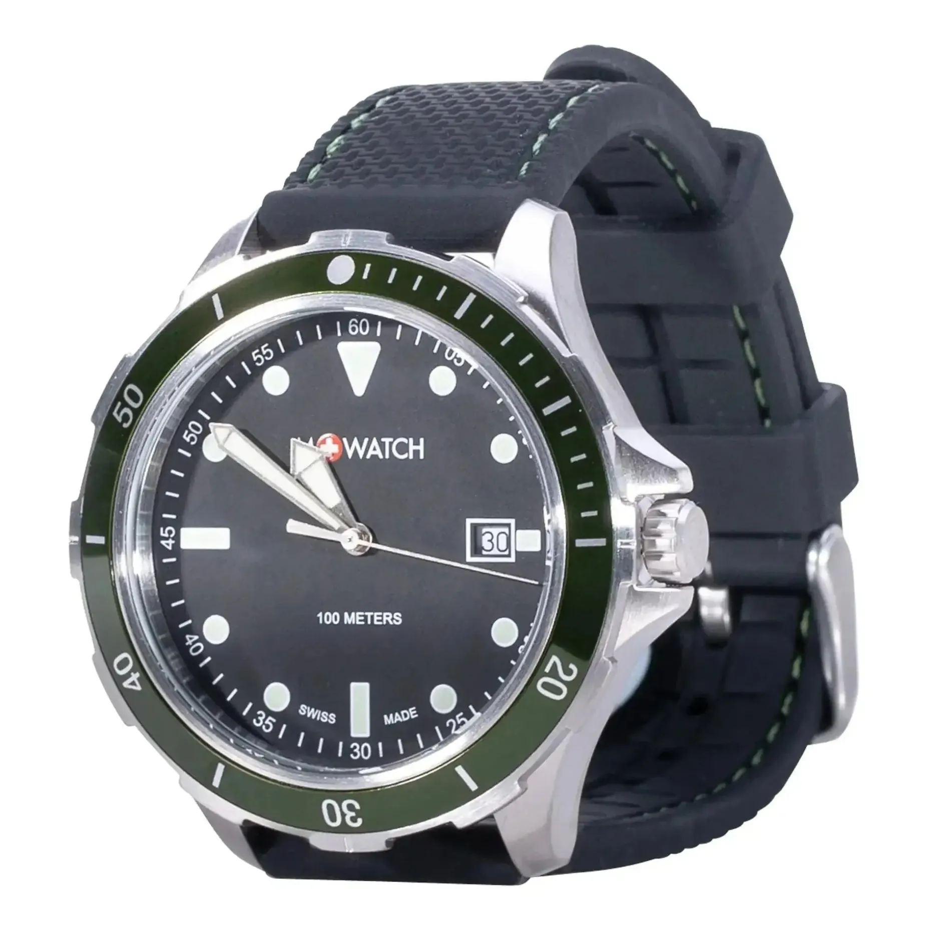 Mit der M+WATCH Armbanduhr Mondaine Aqua Steel 42 bist Du bei Deinem nächsten Wasser-Abenteuer perfekt ausgestattet. Die Analoguhr ist geeignet für Tauchgänge bis zu 100 m Tiefe aus. Sie ist ausgestattet mit einer einseitig drehbaren Lünette, einem verschraubter Gehäuseboden und einer Krone mit Dichtungsring. Außerdem verfügt sie über eine Stunden-, Minuten-, Sekunden- und Datumsanzeige.