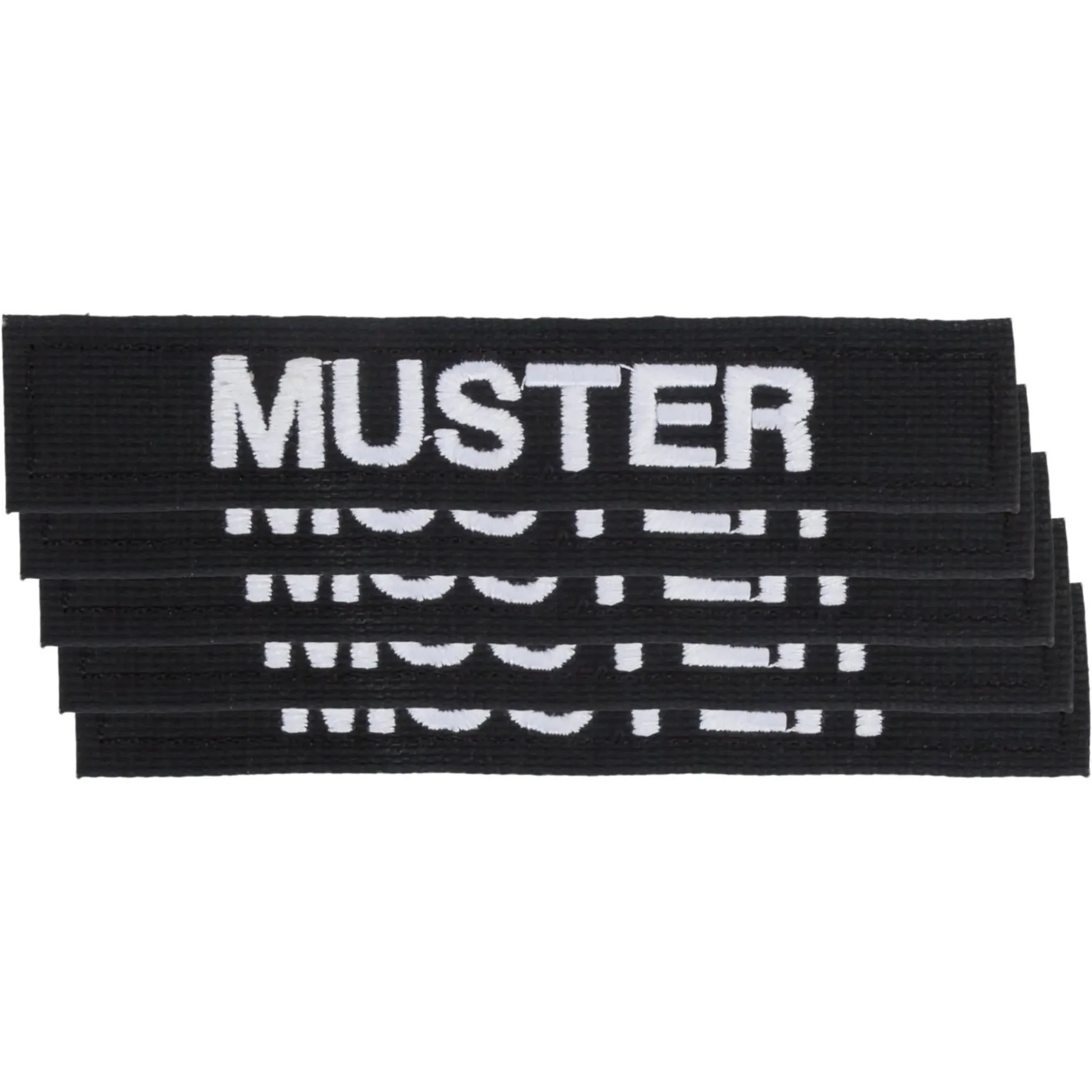 - gestickt auf Klett: Die Beschriftung wird direkt auf den Klett gestickt.