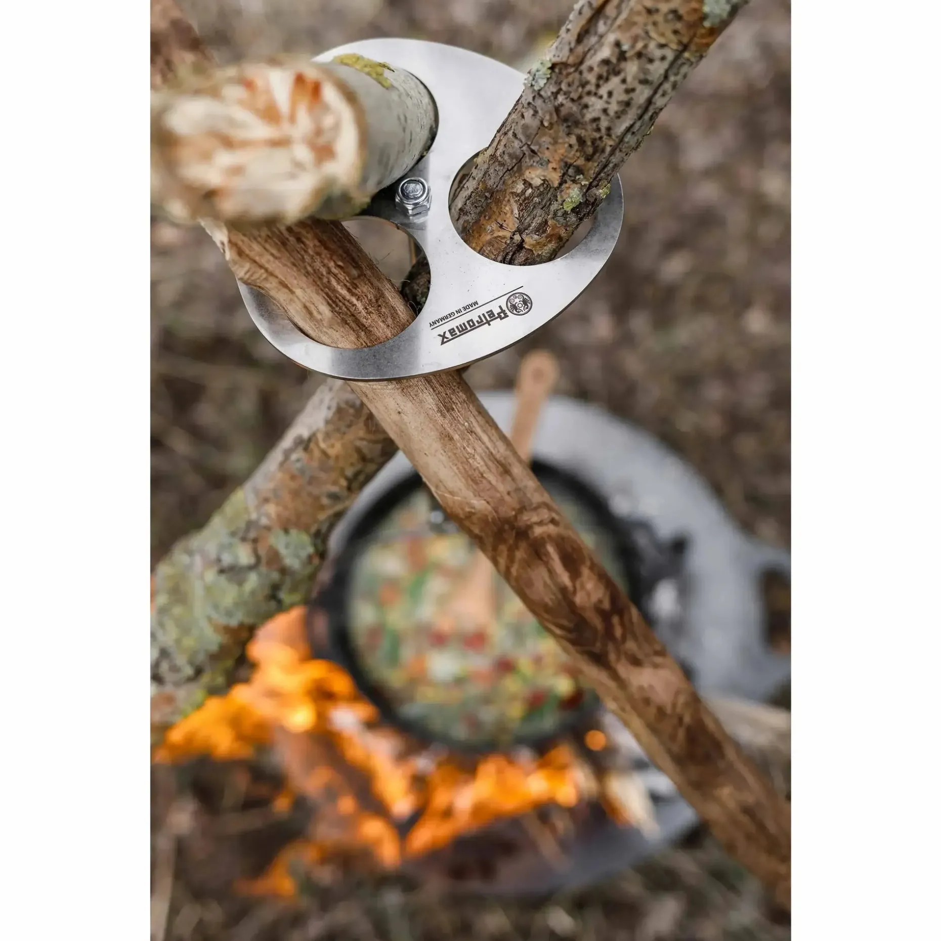 Der Petromax Dreibein-Ring eignet sich hervorragend für Camping und Bushcraft. Ein spontaner Aufbau einer Kochstelle ist überall in der Natur möglich. Der robuste und langlebige Dreibein-Ring aus Edelstahl fasst drei Äste, die Du im Wald bearbeiten kannst. Somit kannst Du Dir ein standfestes Dreibein über Deiner Feuerstelle errichten. Da die verwendeten Äste erst beim Errichten gesucht werden, wird kein zusätzlicher Platz in Deinem Gepäck benötigt. Die Kette kannst Du, je nach Hitzebedarf, näher an die Feuerstelle hängen oder weiter davon entfernen. Optional kannst Du den Dreibein-Ring auch für den Aufbau eines Tipis verwenden.