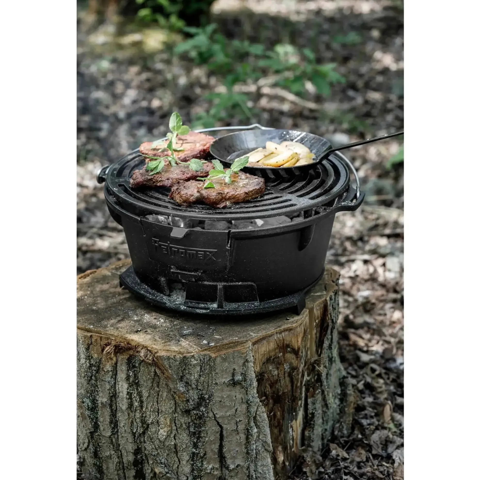 Du kannst den Petromax Feuergrill tg3 als Grill oder Kochstelle für Feuertöpfe (bis zur Größe ft12) verwenden. Die natürliche Antihaftwirkung des gusseisernen Grillrostes ein entscheidender Vorteil. Dank der vorbehandelten Oberfläche (seasoned finish) kannst Du den tg3 sofort verwenden. Ein erstes Einbrennen ist nicht nötig. Wurst, Fleisch und Gemüse haften nicht an und mit jedem weiteren Gebrauch wird die Antihaftwirkung verstärkt. Mit Holzkohle und Grillbriketts wird der Feuergrill schnell und langanhaltend angeheizt.