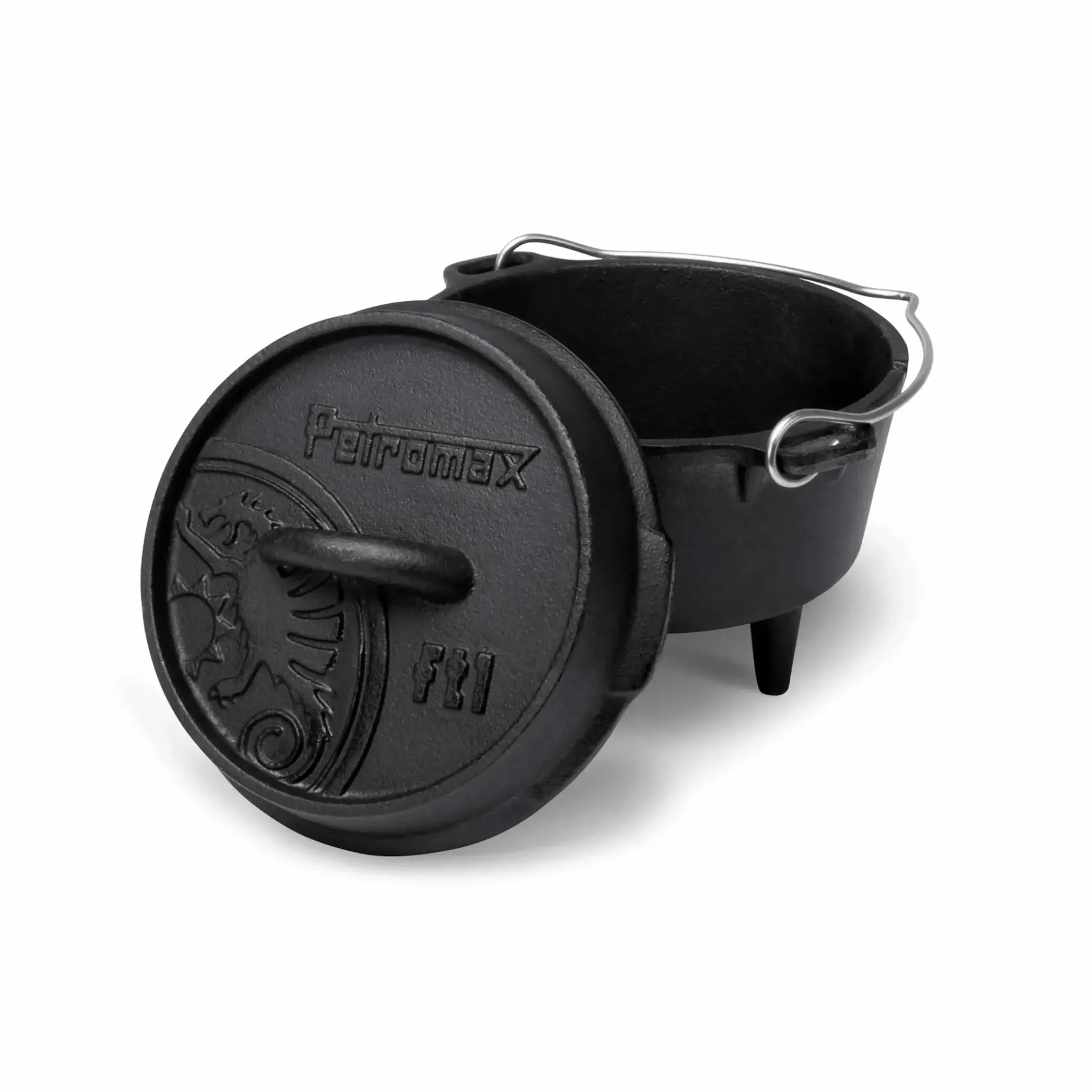 Der Petromax Feuertopf ft1 mit Füßen ist auch unter dem Namen Dutch Oven bekannt. Egal ob Zuhause oder im Freien, der gusseiserne Topf mit bereits vorbehandelter Oberfläche (seasoned finish) eignet sich ideal für das Kochen und Backen. Die Vorbehandlung erspart Dir das erstmalige Einbrennen, sodass Du den Feuertopf direkt nutzen kannst. Er wird auf dem offenen Feuer oder mit Holzkohle verwendet. Der Deckel mit erhöhtem Rand ermöglicht Dir das Beheizen des Topfs von allen Seiten, da Holzkohle oder Glut oben aufgelegt werden kann. Der Deckel lässt sich bei Bedarf als Pfanne verwenden, was die Einsatzmöglichkeiten noch erweitert. Ein weiteres durchdachtes Feature ist die Thermometerdurchführung zur Kontrolle der Innentemperatur, ohne den Deckel abzuheben.