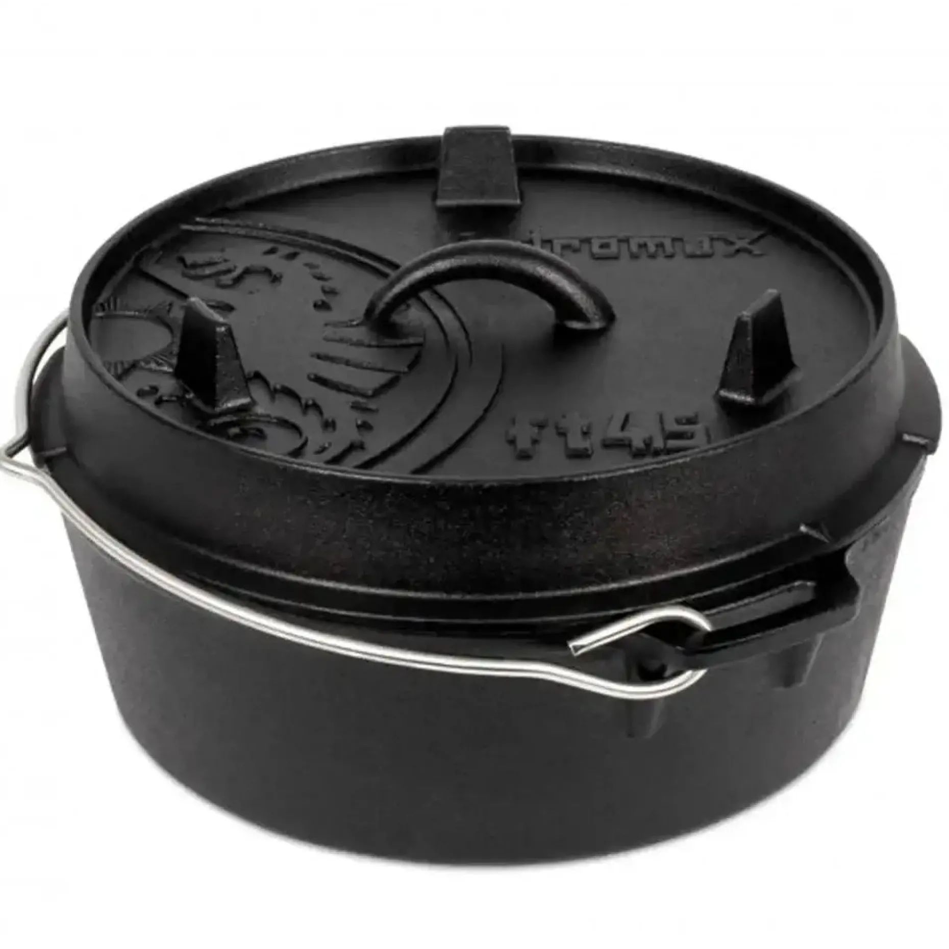 Die Vorbehandlung erspart das erstmalige Einbrennen, sodass der Feuertopf direkt verwendet werden kann. Er wird auf dem offenen Feuer oder mit Holzkohle verwendet. Der Deckel mit erhöhtem Rand ermöglicht das Beheizen des Topf von allen Seiten, da Holzkohle oder Glut obenauf gelegt werden kann. Der Deckel lässt sich bei Bedarf als Pfanne verwenden, was die Einsatzmöglichkeiten noch erweitert. Ein weiteres durchdachtes Feature ist die Thermometerdurchführung zur Kontrolle der Innentemperatur, ohne den Deckel abzuheben.