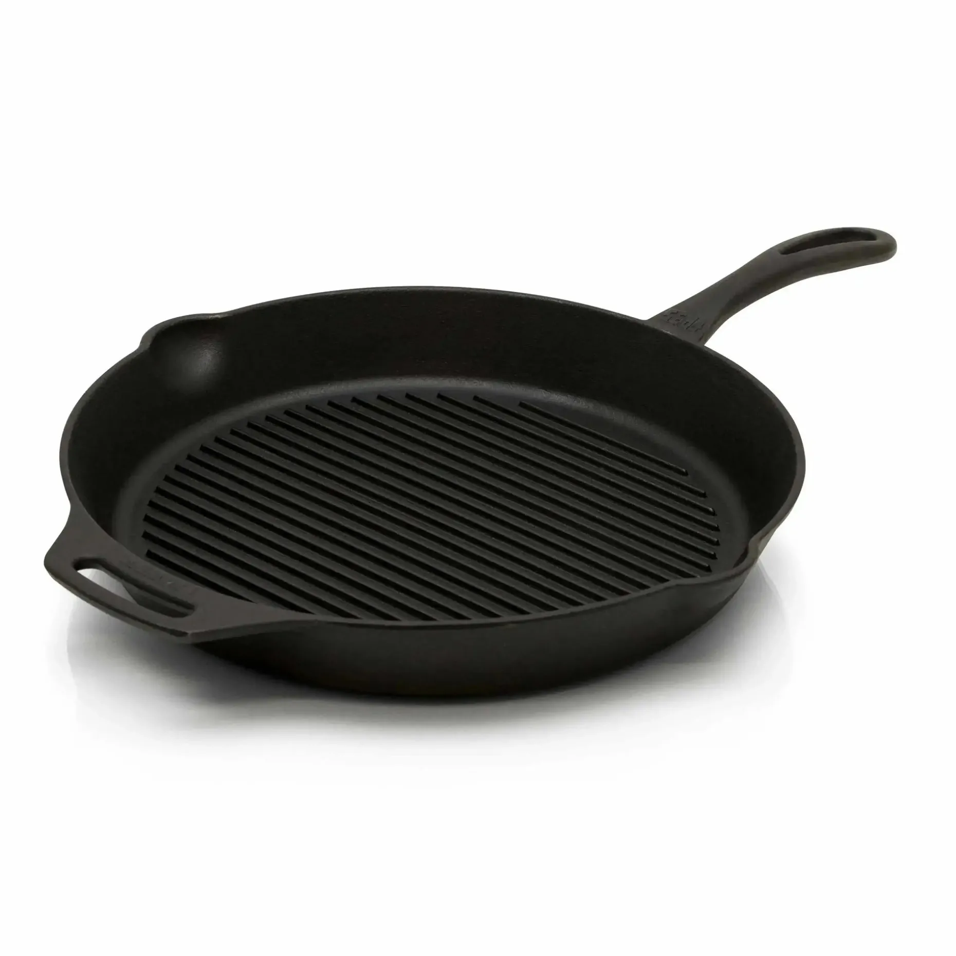Die Petromax Grill-Feuerpfanne gp35 ist optimal zum Zubereiten von Fleisch oder Gemüse wie frisch vom Grill. Die robuste Pfanne aus Gusseisen funktioniert am Lagerfeuer genau so wie im Backofen. Der gerillte Pfannenboden sorgt für eine fettarme Zubereitung und die typischen Grillstreifen. Das Fleisch liegt direkt auf den Rillen auf und gart nicht im Fett. Die Vorbehandlung (seasoned finish) erspart Dir das erstmalige Einbrennen, sodass Du die Grill-Feuerpfanne direkt verwenden kannst. Für eine einfache Handhabung hat die Pfanne einen Stiel und einen Griff. Die Pfanne kannst Du nach dem Zubereiten auch zum Servieren auf den Tisch stellen, da Gusseisen die Wärme lange speichert.