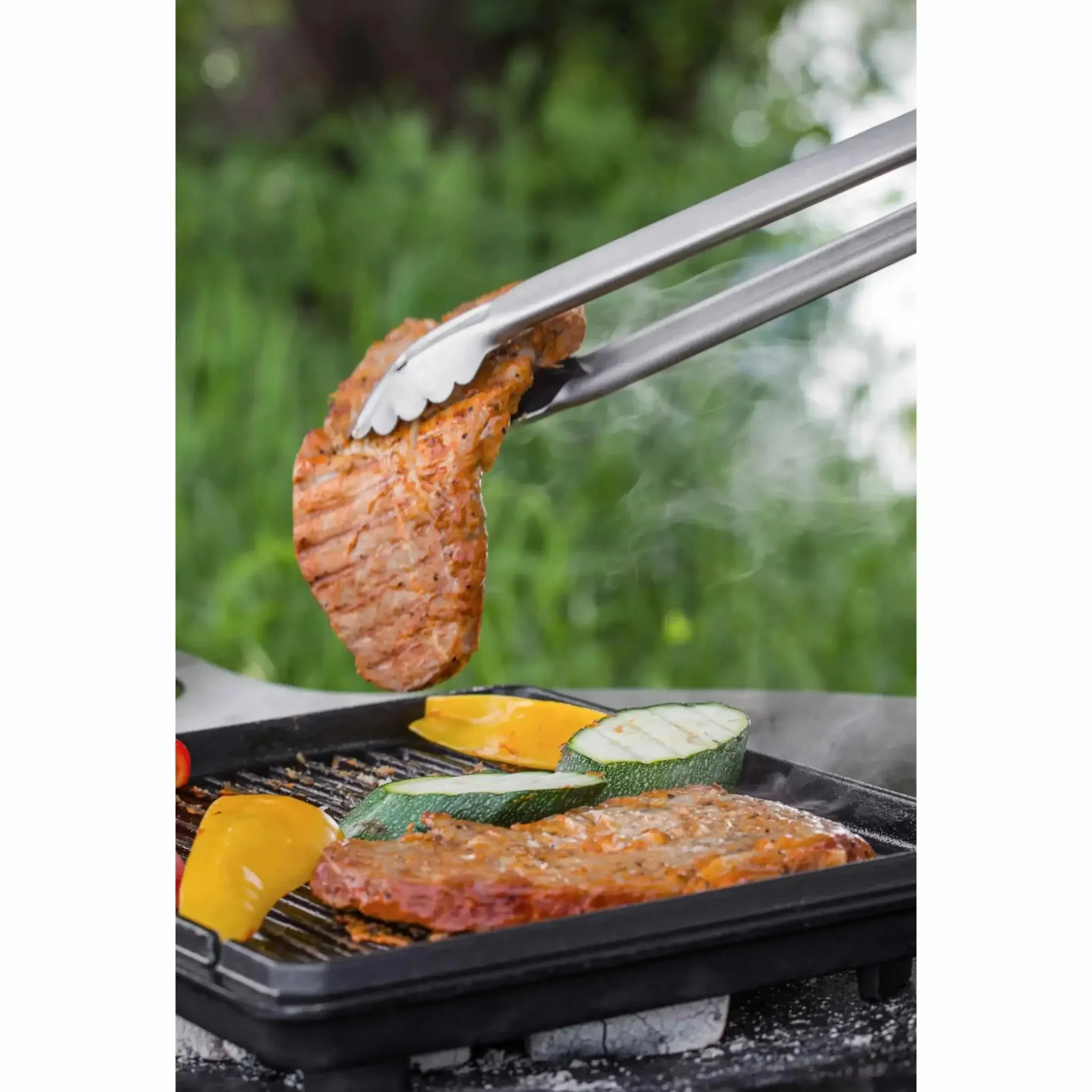 Die Petromax Grill- und Kohlenzange aus gebürstetem Edelstahl ist gleichermaßen für Grillgut, Kohlen und Briketts geeignet. Der gewölbte Zangenkopf greift diese sicher, sodass Du sie einfach platzieren kannst. Mit edlem Holzgriff für einfache Handhabung. Die Grill- und Kohlenzange kann durch einen Schieber am Griffende platzsparend verschlossen und an der Öse aufgehängt werden.
