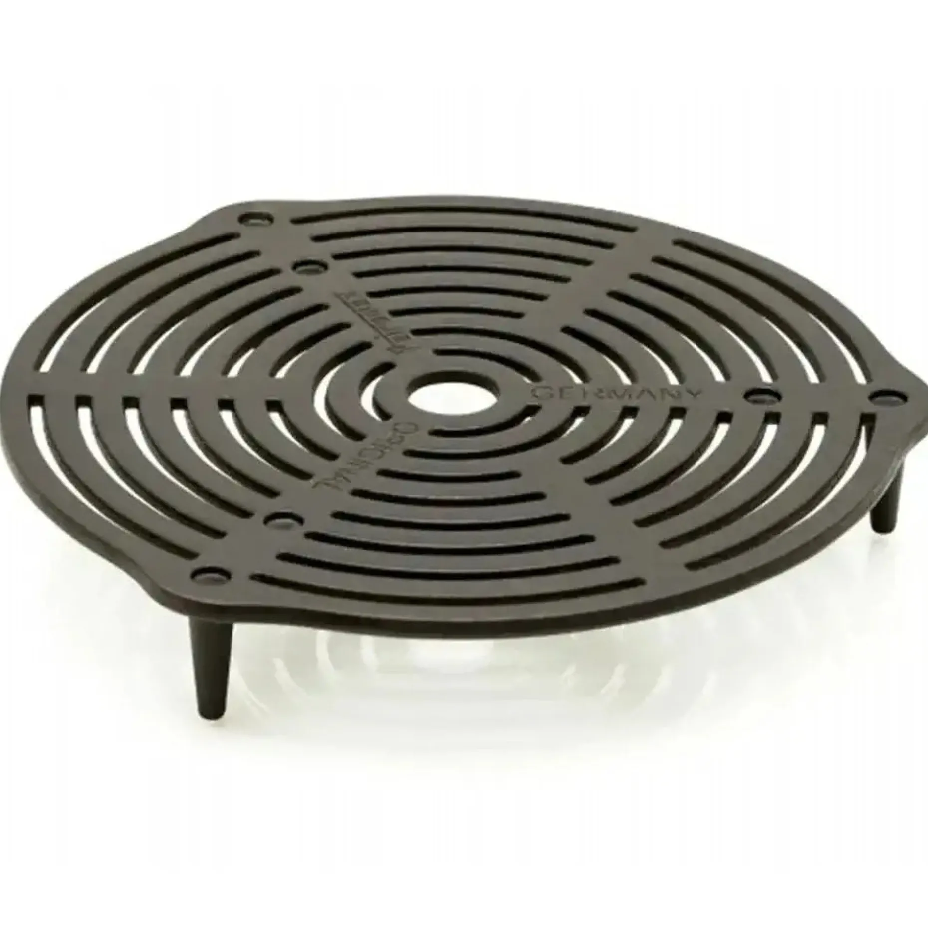Durch die Vertiefungen auf der Oberfläche kannst Du mehrere Roste stapeln und mehrere Gerichte zeitgleich zubereiten. Der Stapelrost ist geeignet für die Benutzung eines Feuertopfs ab der Größe ft12.