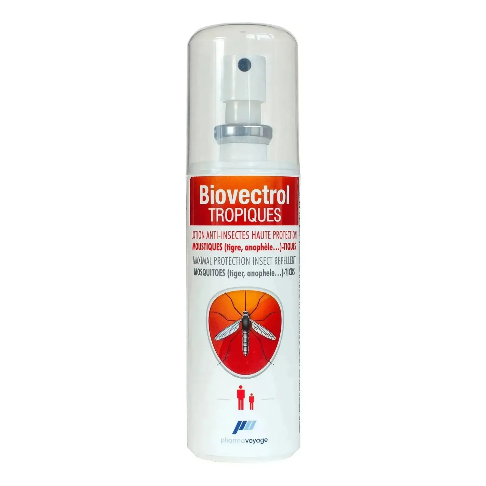 Das Pharmavoyage Anti-Mücken-Spray Biovectrol Tropiques bietet 8 bis 10 Stunden effektiven Schutz gegen Insekten in allen tropischen Gebieten und Ländern mit hohem Malariarisiko. Es enthält 50% DEET, dem am meisten bewährten Wirkstoff, wenn es um die Abwehr von heimischen und tropischen Mückenarten geht. Zudem bietet es Schutz gegen Sandflöhe, Zecken oder Flöhe. Zudem ist das Spray wasserabweisend und geruchsneutral.