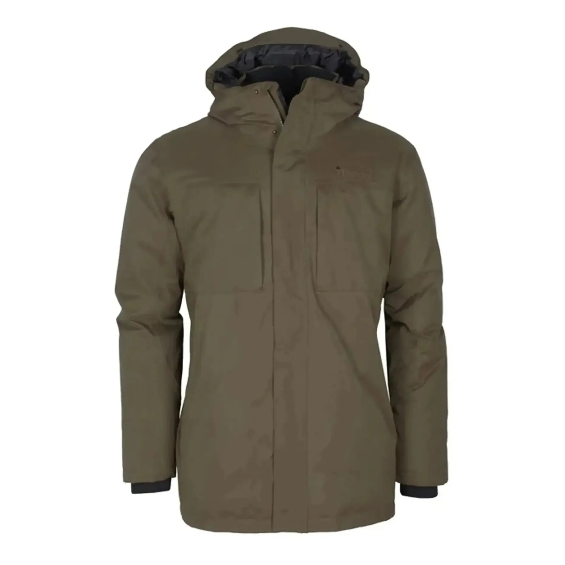 Die Pinewood Jacke Värnamo Padded earth brown hält Dich bei großer Kälte und eisigem Wind angenehm warm. Die wind- und wasserdichte Herrenjacke ist mit einer isolierenden und wärmenden hermore Ecodown-Füllung mit 600+ Bauschkraft aus 100% recycelten PET-Flaschen ausgestattet. Mit ihrem längeren Schnitt hält die sie auch den unteren Rücken warm, während Gesicht und Hals vom hohen Kragen gut geschützt werden und der Stretch-Abschluss am Ärmelende das Eindringen kalter Luft verhindert. Für einen warmen Kopf sorgt die ebenfalls gefütterte und verstellbare Kapuze mit verstärktem Schild.