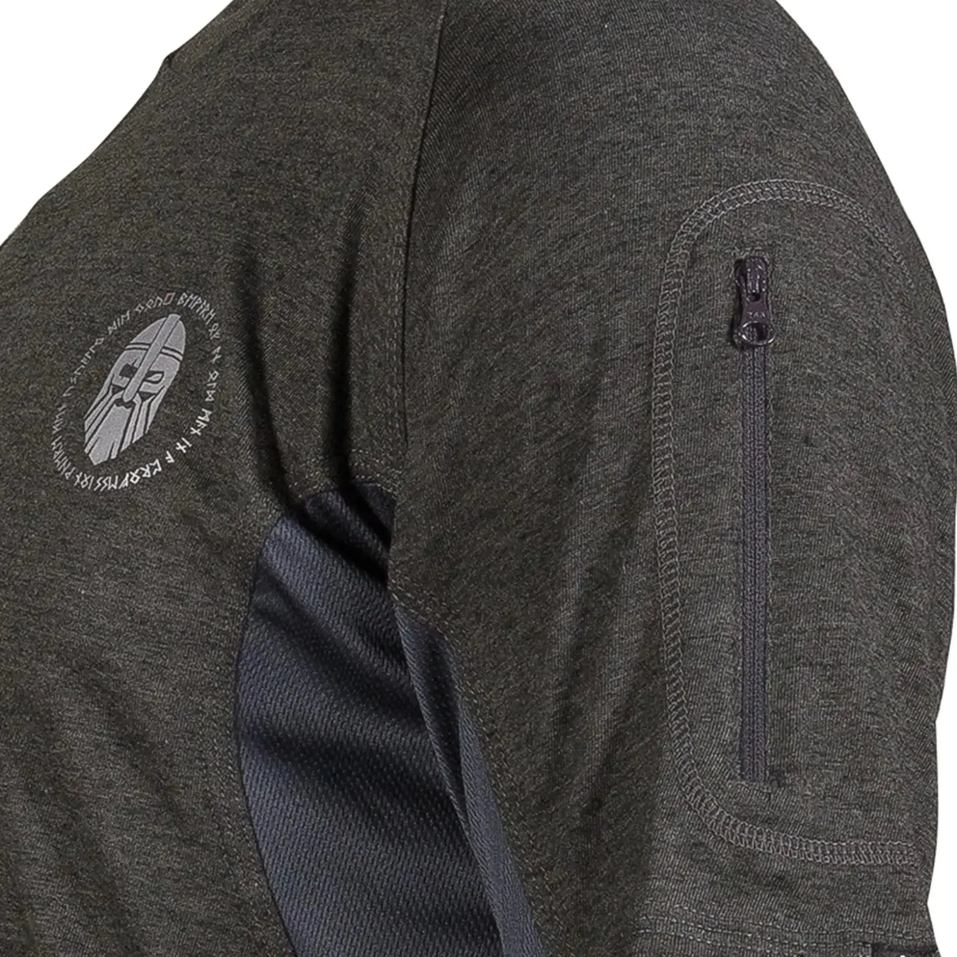 Das Ragnar Raids T-Shirt Aesir Rune kombiniert Vigoré-Baumwolle mit Polyester im Unterarmbereich. Diese Materialkombination sorgt für ein angenehmes Tragegefühl in Kombination mit Atmungsaktivität. Zum Aufbewahren von Kleinteilen wie Schlüssel oder Dokumenten hast Du eine kleine Reißverschlusstasche am Oberarm.