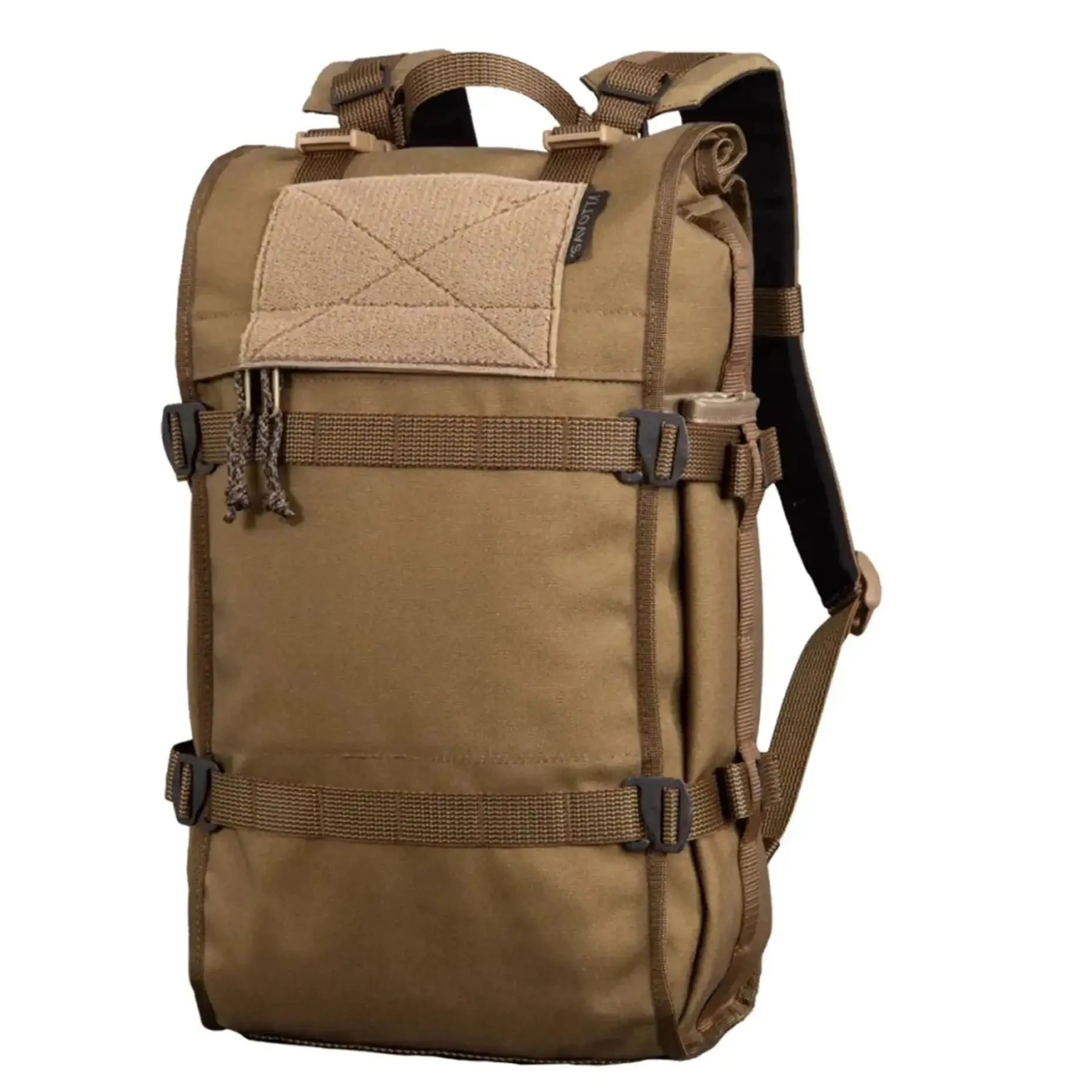 Der Rolltop-Verschluss ist nicht nur besonders zuverlässig, sondern auch unkompliziert in der Handhabung, selbst bei widrigen Bedingungen wie Sand, Schnee oder Matsch. Die Seitentaschen fassen jeweils 2,5 Liter und halten Flaschen oder Ausrüstung sicher und griffbereit. Dank der PALS-Bänder und G-Haken kannst Du zusätzliche Ausrüstung außen befestigen. Mit einem Trinkblasenfach, gepolsterten Schultergurten und einer entnehmbaren Rückenplatte wird Tragekomfort großgeschrieben. Die robuste Fertigung aus 1000D Cordura und der einfache Austausch von Gurten und Schnallen machen den Rucksack äußerst langlebig und wartungsfreundlich.