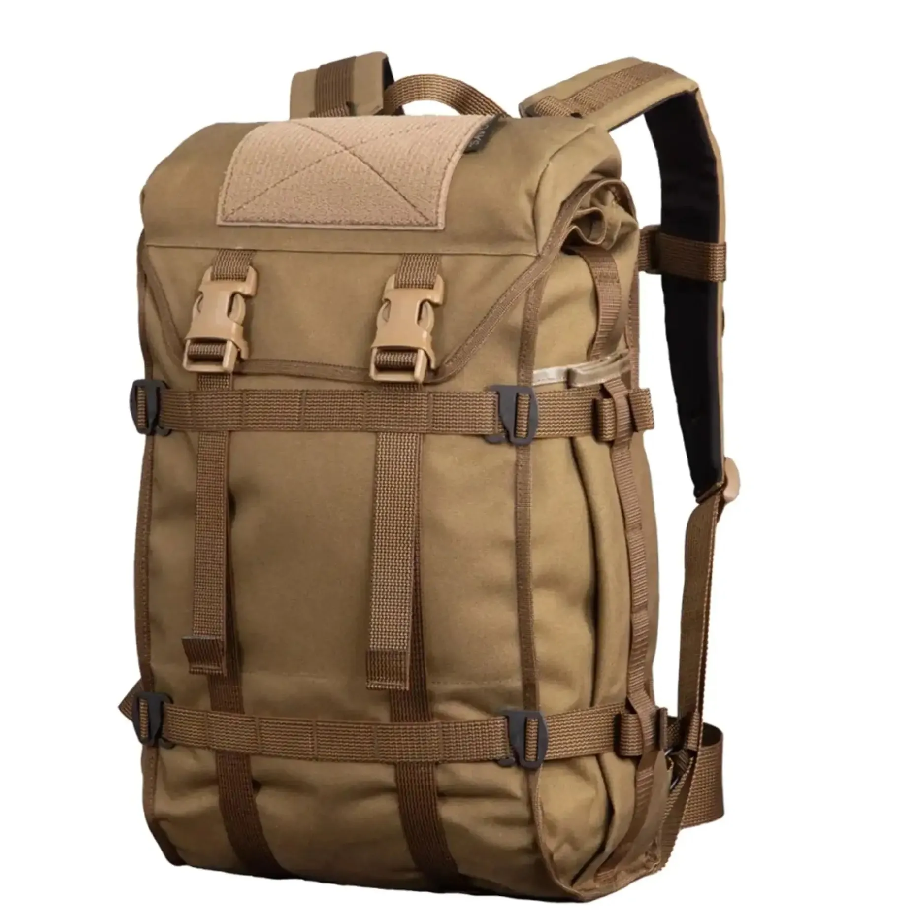 Das Hauptfach ist mit einem zuverlässigen Rolltop-Verschluss ausgestattet, der selbst bei extremen Wetterbedingungen wie Schnee oder Sand einfach zu handhaben ist. Zwei äußere Reißverschlusstaschen erleichtern den Zugriff auf kleine Ausrüstungsteile, während das Trinkblasenfach und zahlreiche PALS-Bänder die Vielseitigkeit erhöhen. Ein besonderes Highlight ist der 50-mm-Hüftgurt, der für zusätzliche Stabilität sorgt, aber bei Bedarf im Rückenfach verstaut werden kann.
