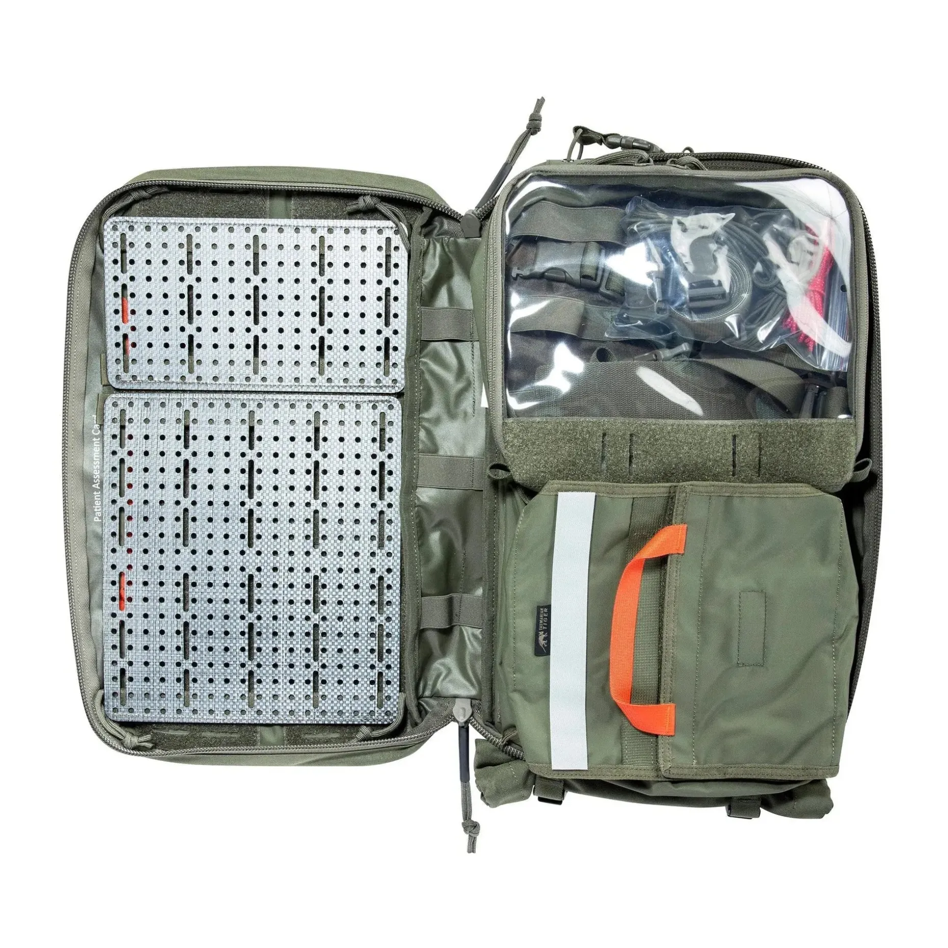Das Hauptfach enthält zwei herausnehmbare Tegris®-Panels, die mit Bungee-Cord-Fixierung und Klettband ausgestattet sind, um Deine Ausrüstung zu organisieren. Zudem gibt es eine transparente Tasche für eine schnelle Übersicht, eine Infusionsbeuteltasche und eine Einstecktasche für Patientenkarten.