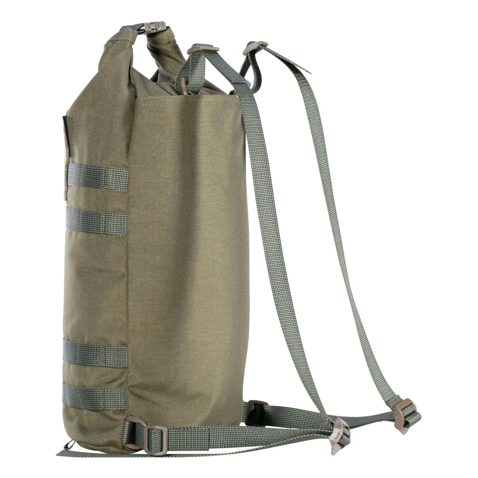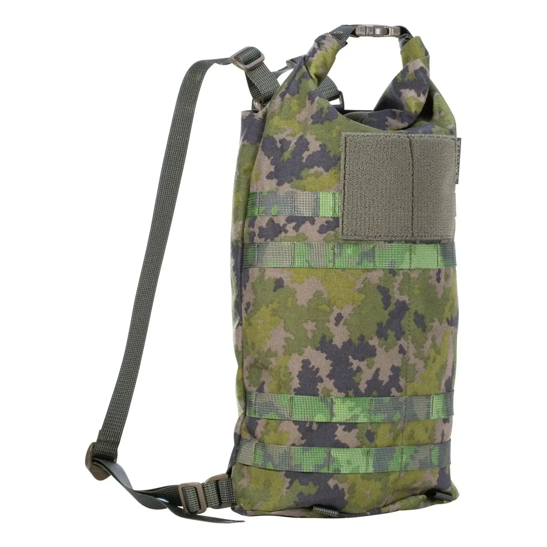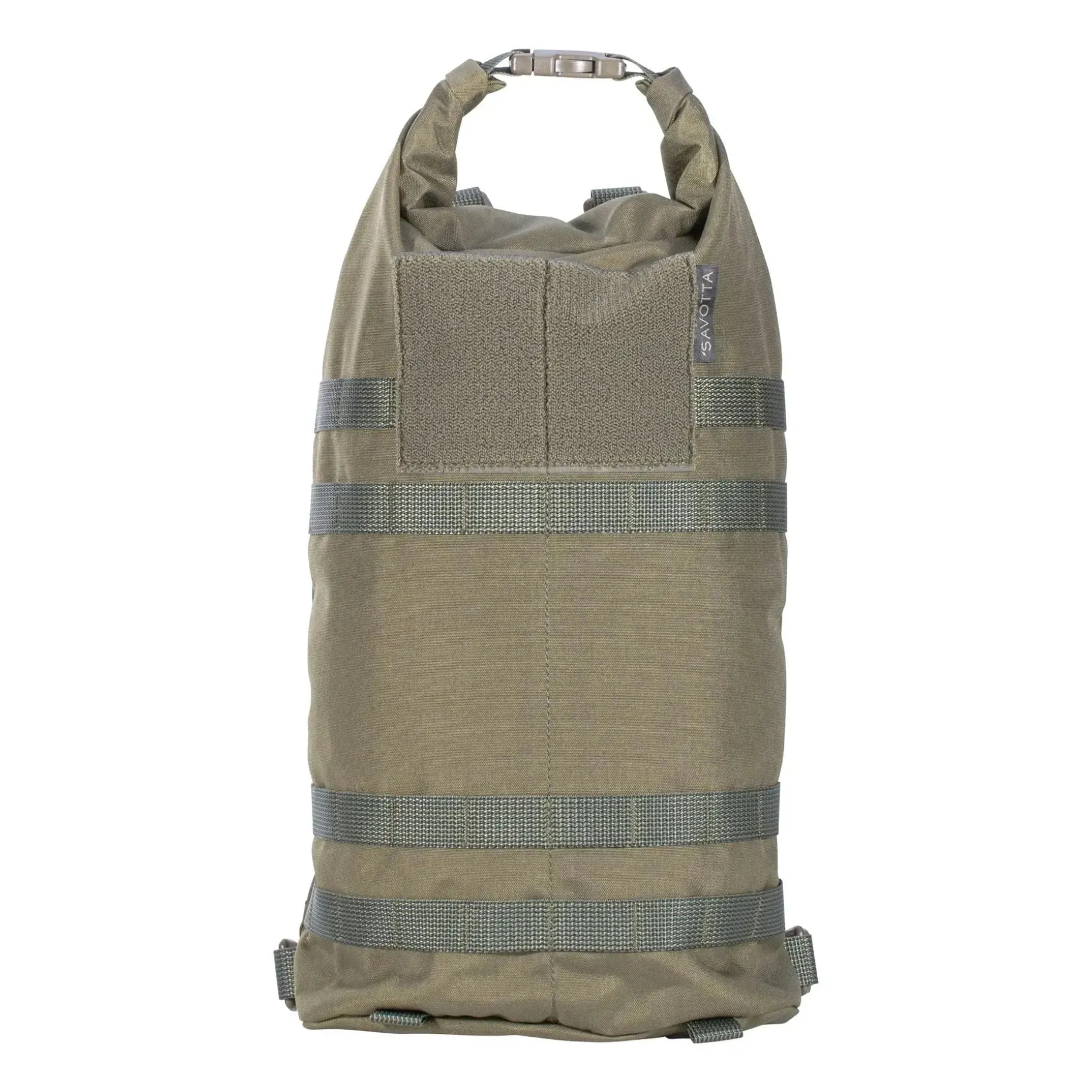 Zudem verfügt der Rucksack auf der Außenseite über vier PALS-Gurtbandreihen. Diese können verwendet werden, um Taschen, Bungee-Seile und Schnallen anzubringen, um den Hatka schnell an einem größeren Rucksack zu befestigen. Die vier Gurtschlaufen an der Unterseite können für elastische Schnüre verwendet werden, sodass Du Zubehör unter dem Rucksack tragen kannst.