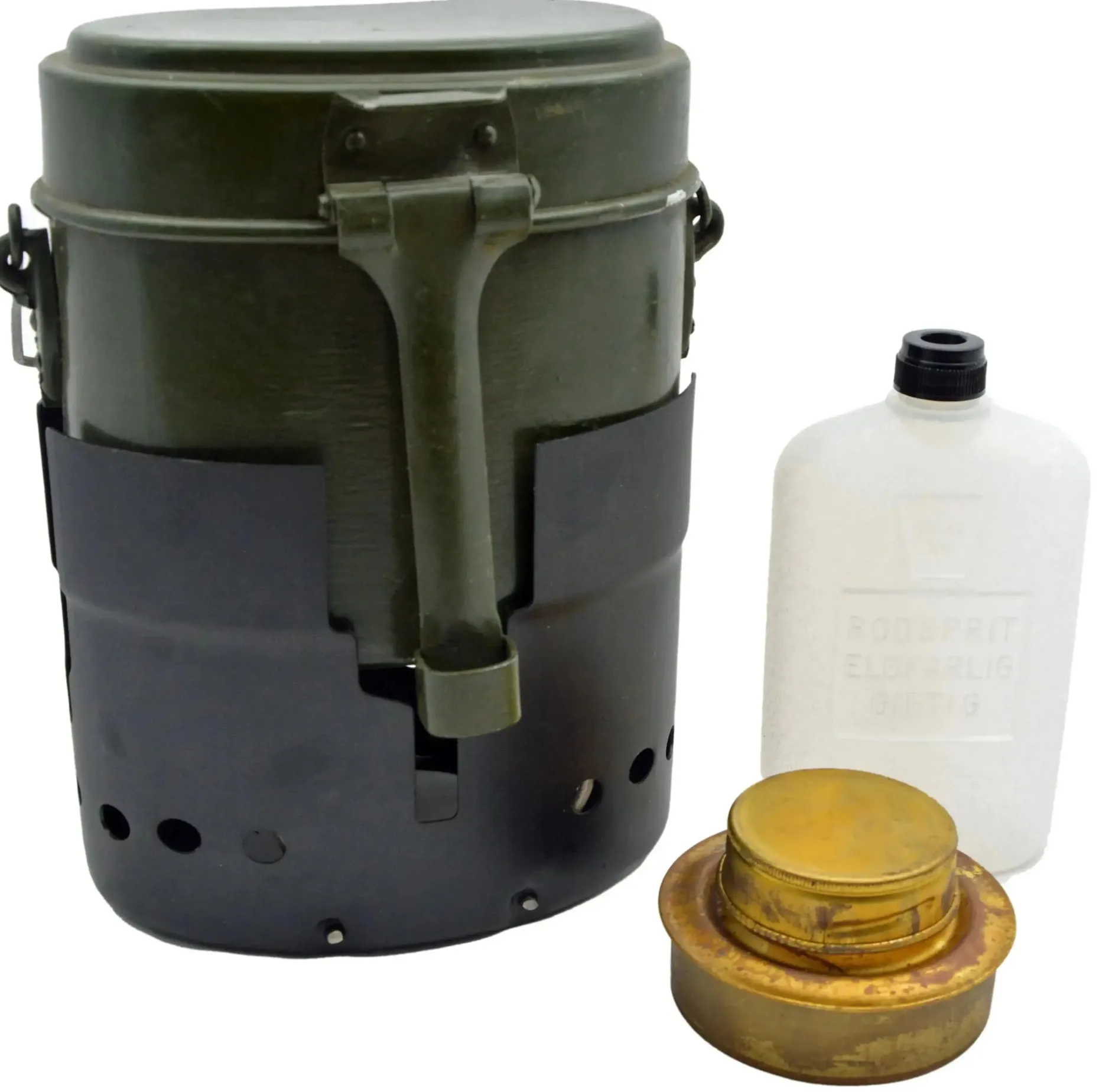 Militärisches Kochgeschirr aus Beständen der schwedischen (S) und rumänischen (R) Armee, bestehend aus folgenden Komponenten:
