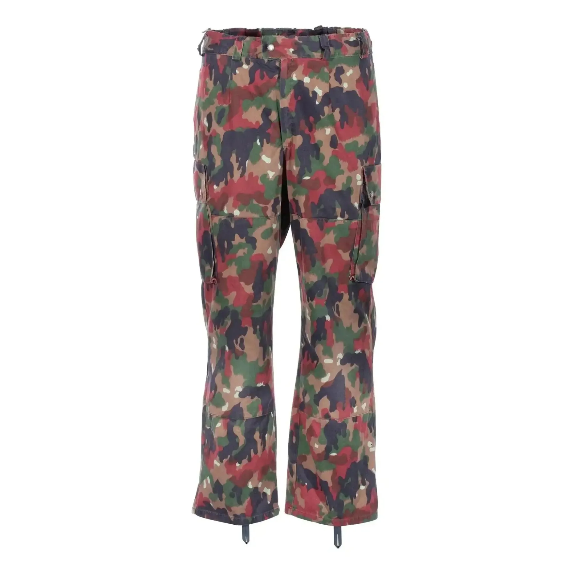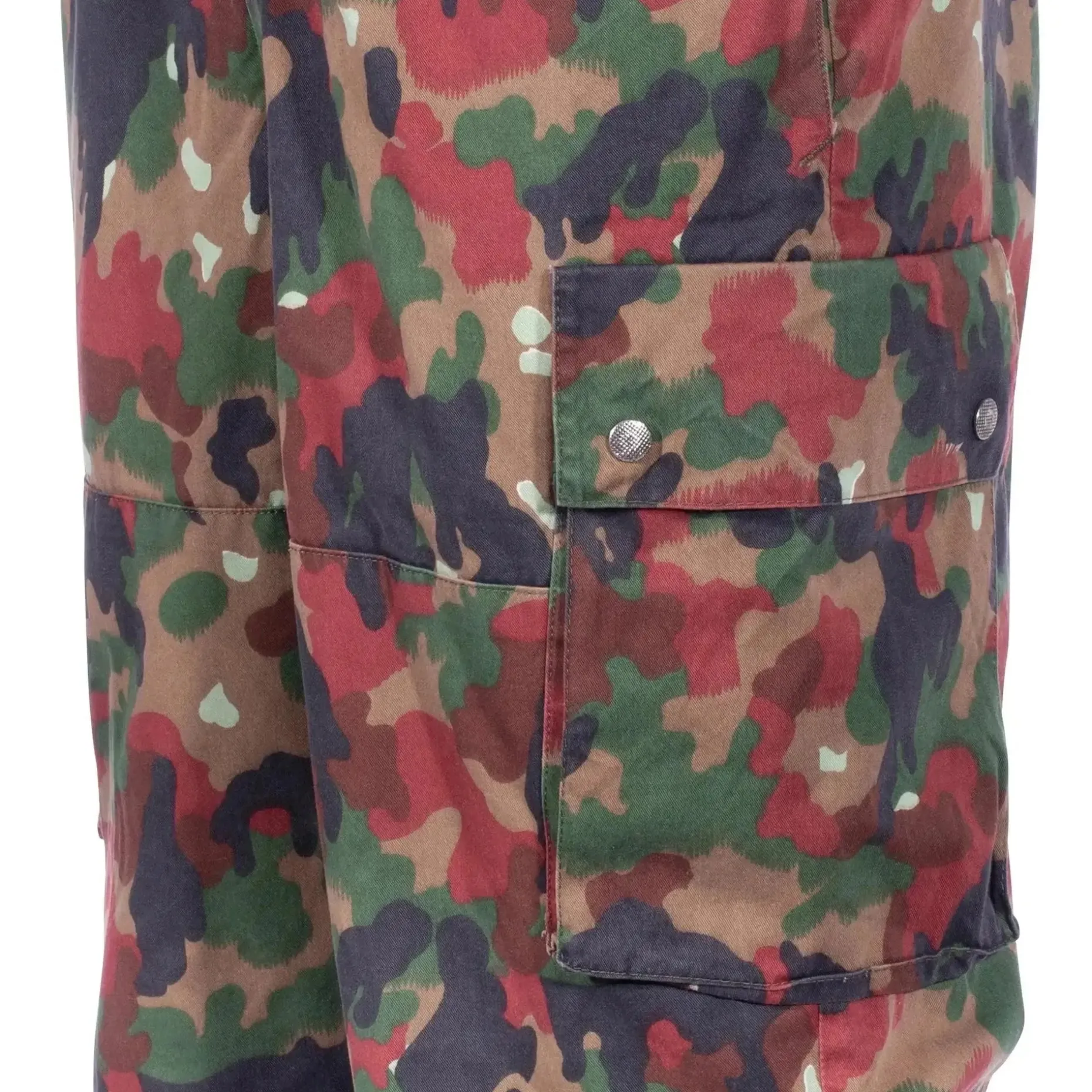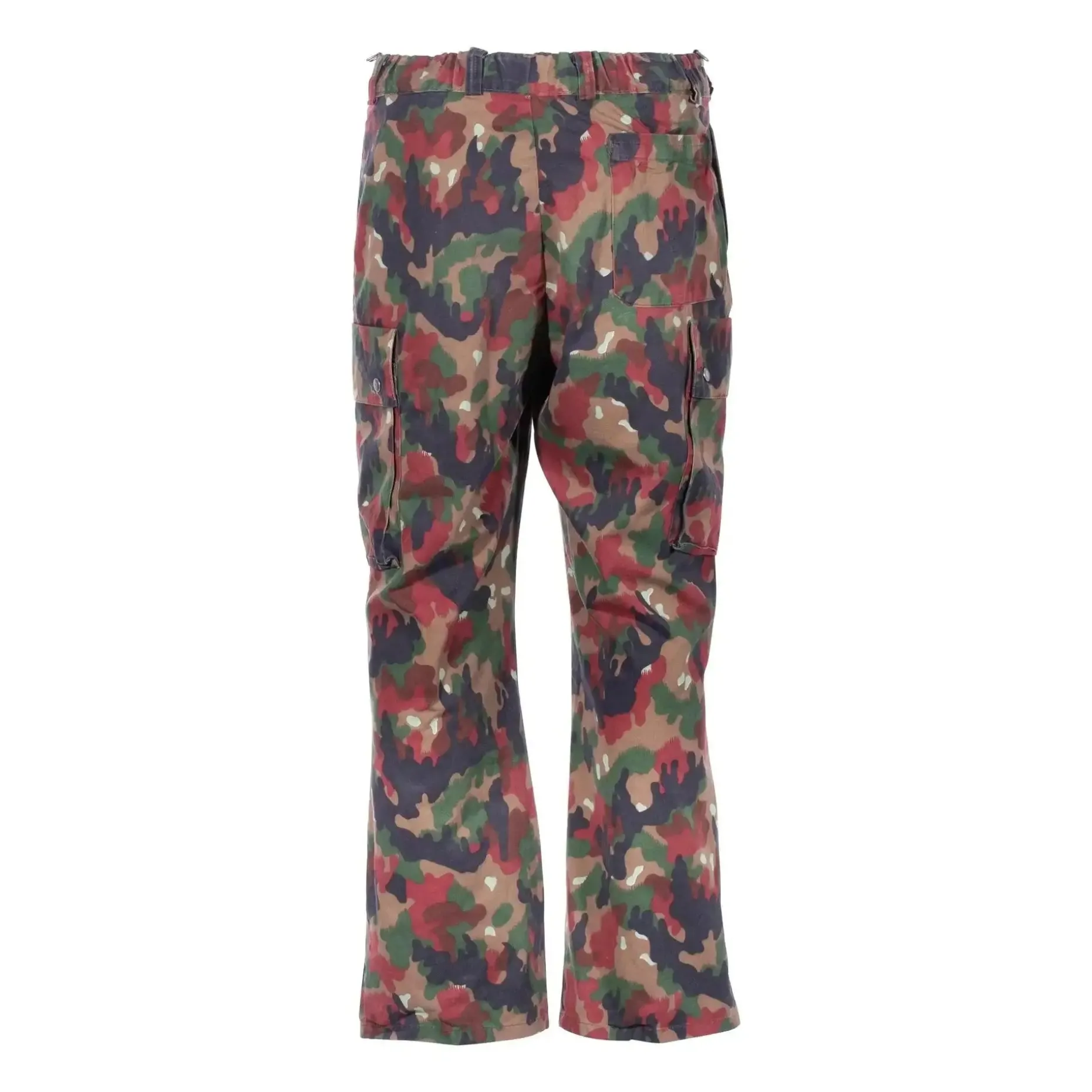 Die Lieferung erfolgt mit oder ohne Hosenträger. Zudem hat die Schweizer Feldhose M83 tarn gebraucht teilweise einen wasserfesten Besatz aus Kunststoff im Kniebereich.