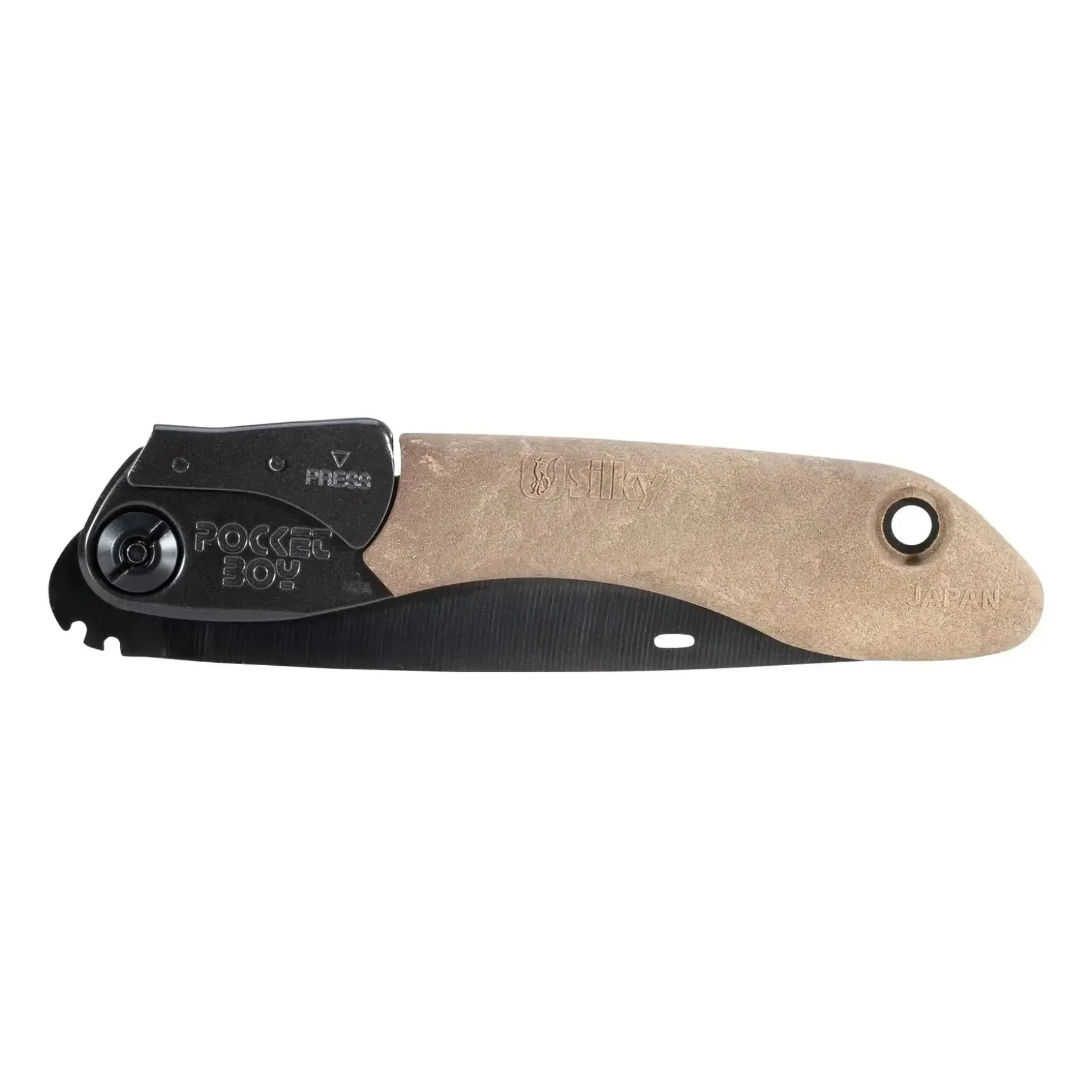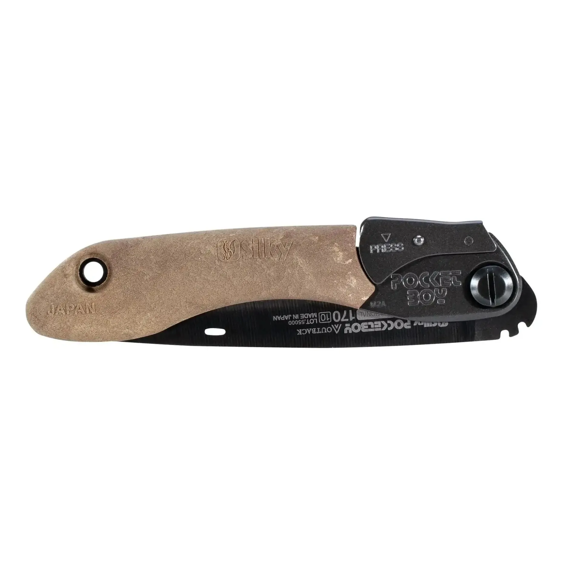 Die Silky Handsäge Pocketboy Outback Edition 170 mm ist langlebig und robust. Aufgrund der Klinge kann sie Knochen und Holz schneiden. Sie ist mit einer Nickel- und Zinnmischung verdunkelt, wodurch die Reflexion minimiert wird. Auf diese Weise ist Tarnung garantiert. Außerdem wurden die Zähne erhitzt und gehärtet, um dreimal länger scharf zu bleiben. Der Griff aus Laubenverbundwerkstoff bietet Dir exzellenten Halt und garantiert auch bei Nässe und Kälte ein gutes Handling.