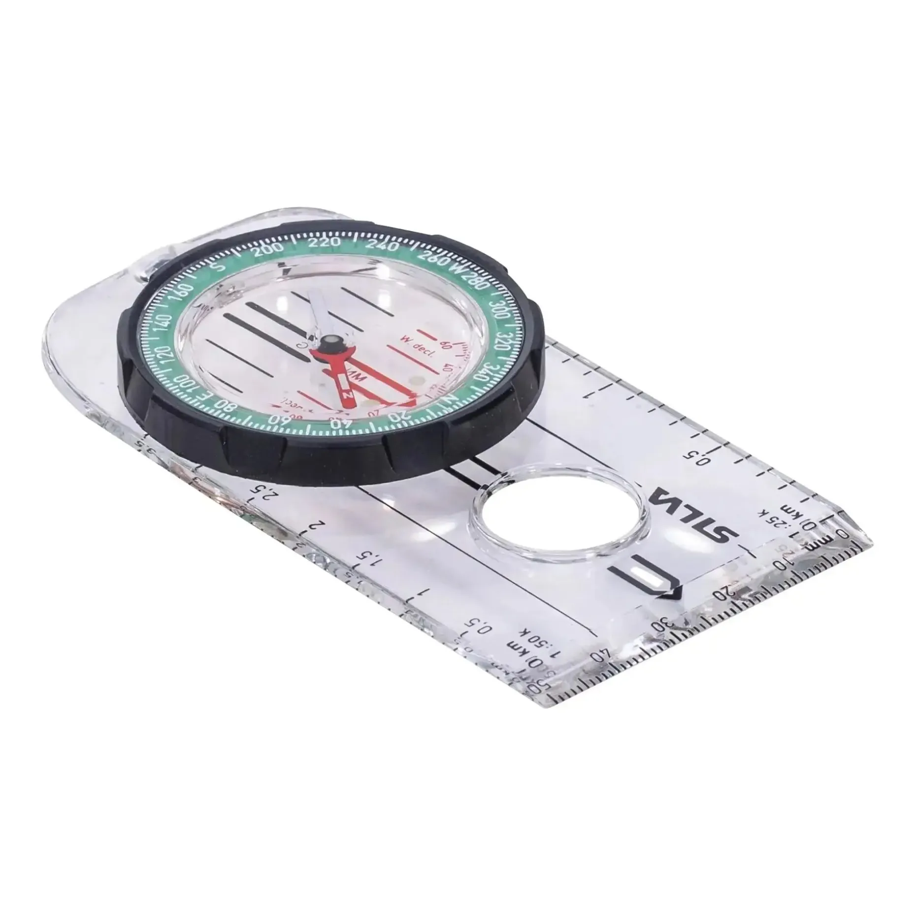 Silva Linealkompass Ranger. Mit integrierter Deklinationsskala. Leuchtmarkierungen für Nachtbetrieb. Mit Millimeterskala und einer Lupe in der transparenten Bodenplatte. Praktisches Umhängeband mit Sicherheitsverschluß.