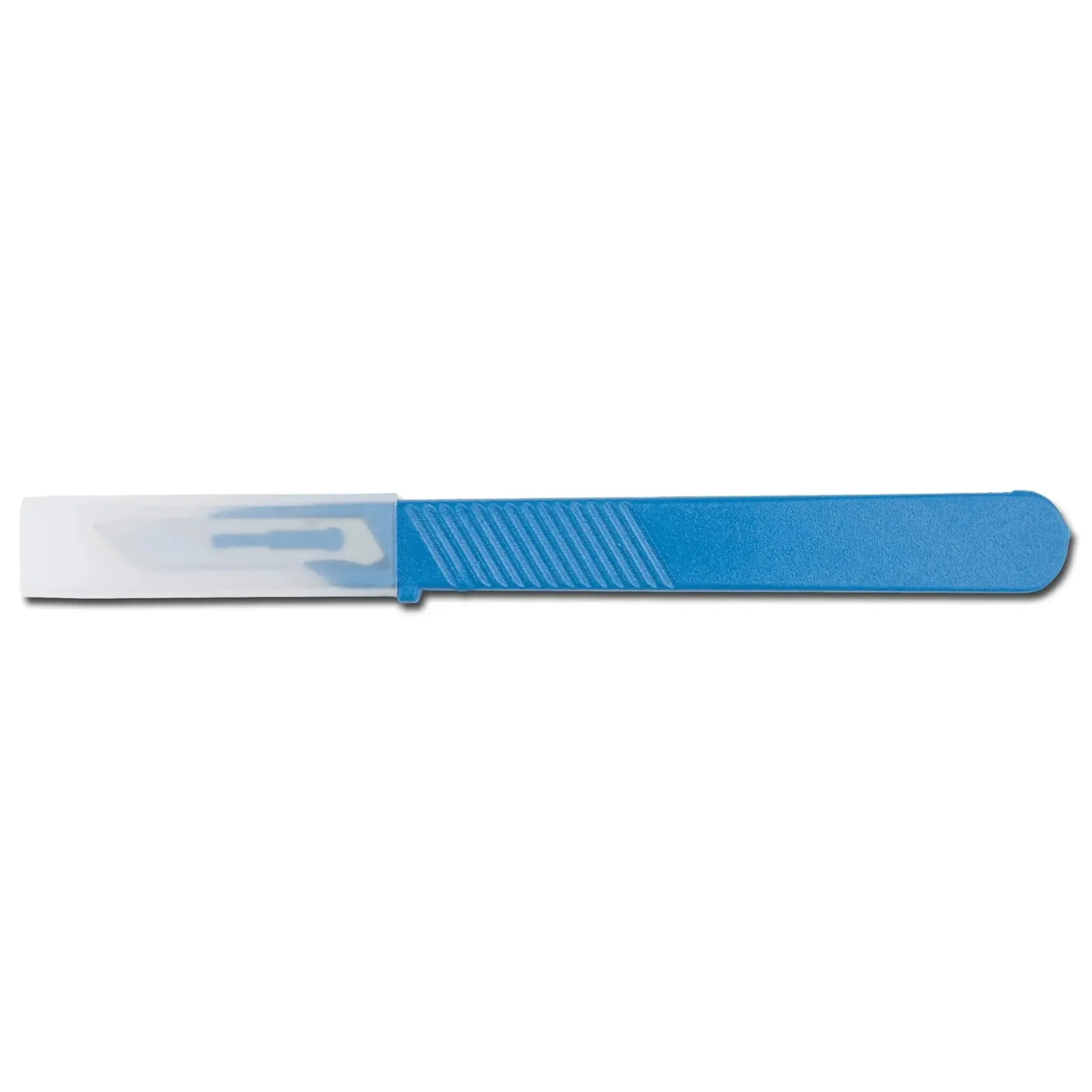 Einmalskalpell mit rostfreier Klinge in einzelner steriler Verpackung. Präzise Schnittführung durch festen Sitz der Klinge. Die Klingenform Figur 10 ist entlang der Schneide und der Rückseite gewölbt und ermöglicht so die Verwendung für Schnitte durch Haut und Muskeln.