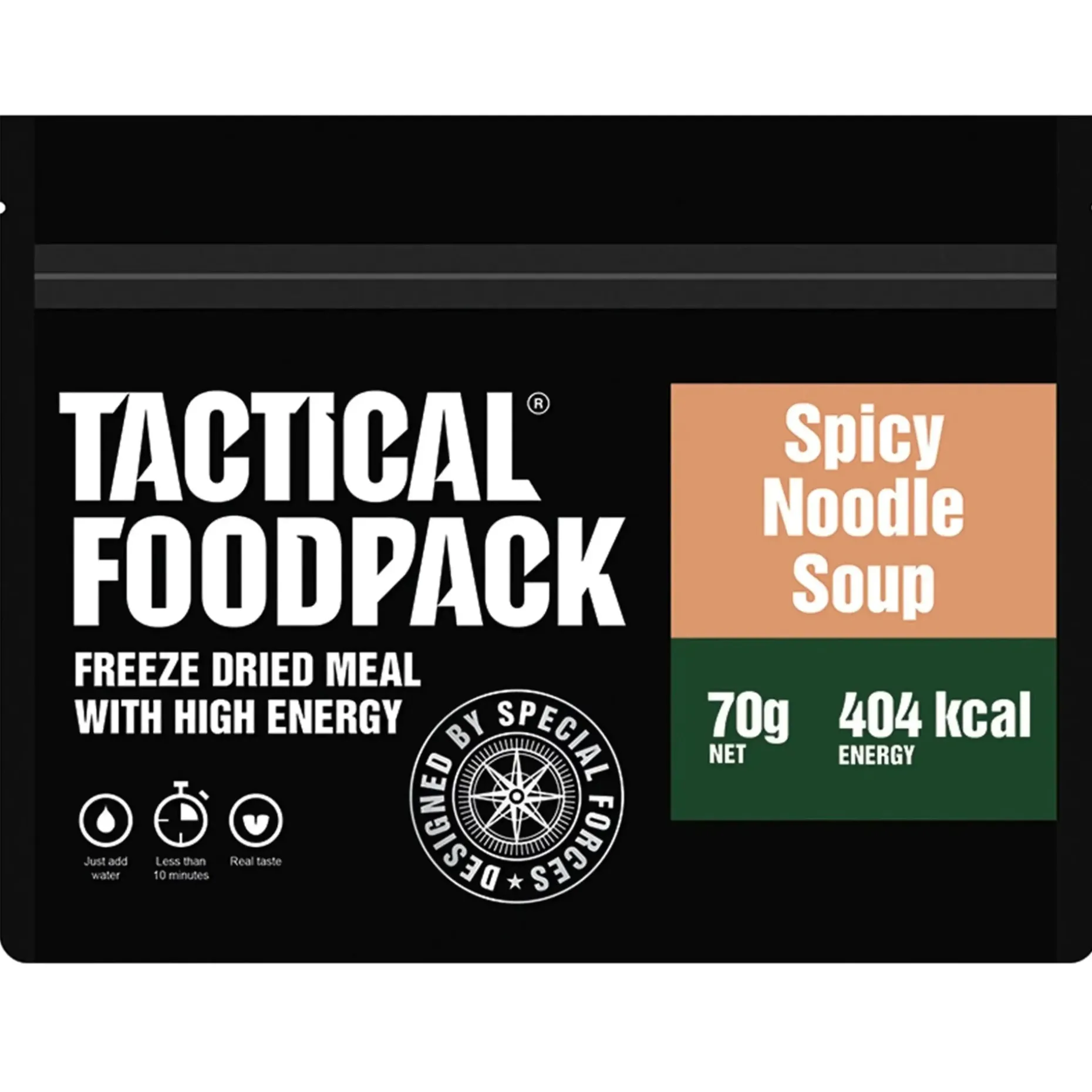 Mit der Tactical Foodpack Würzige Nudelsuppe erhältst Du eine energiereiche Mahlzeit für den Einsatz, die Krisenvorsorge oder Outdoor-Ausflüge. Durch die Gefriertrocknung bleiben alle Zutaten sowohl geschmacklich als auch auf Nährstoffe bezogen von höchster Qualität. Die Notfallnahrung wird aus natürlichen Zutaten ohne Zusatzstoffe und Geschmacksverstärker zubereitet.