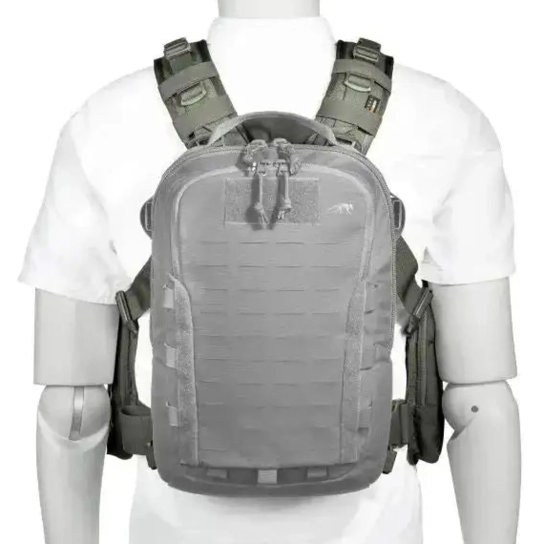 - Lasercut-MOLLE auf den Schultergurten für zusätzliche Ausrüstung und TQ-Pouches