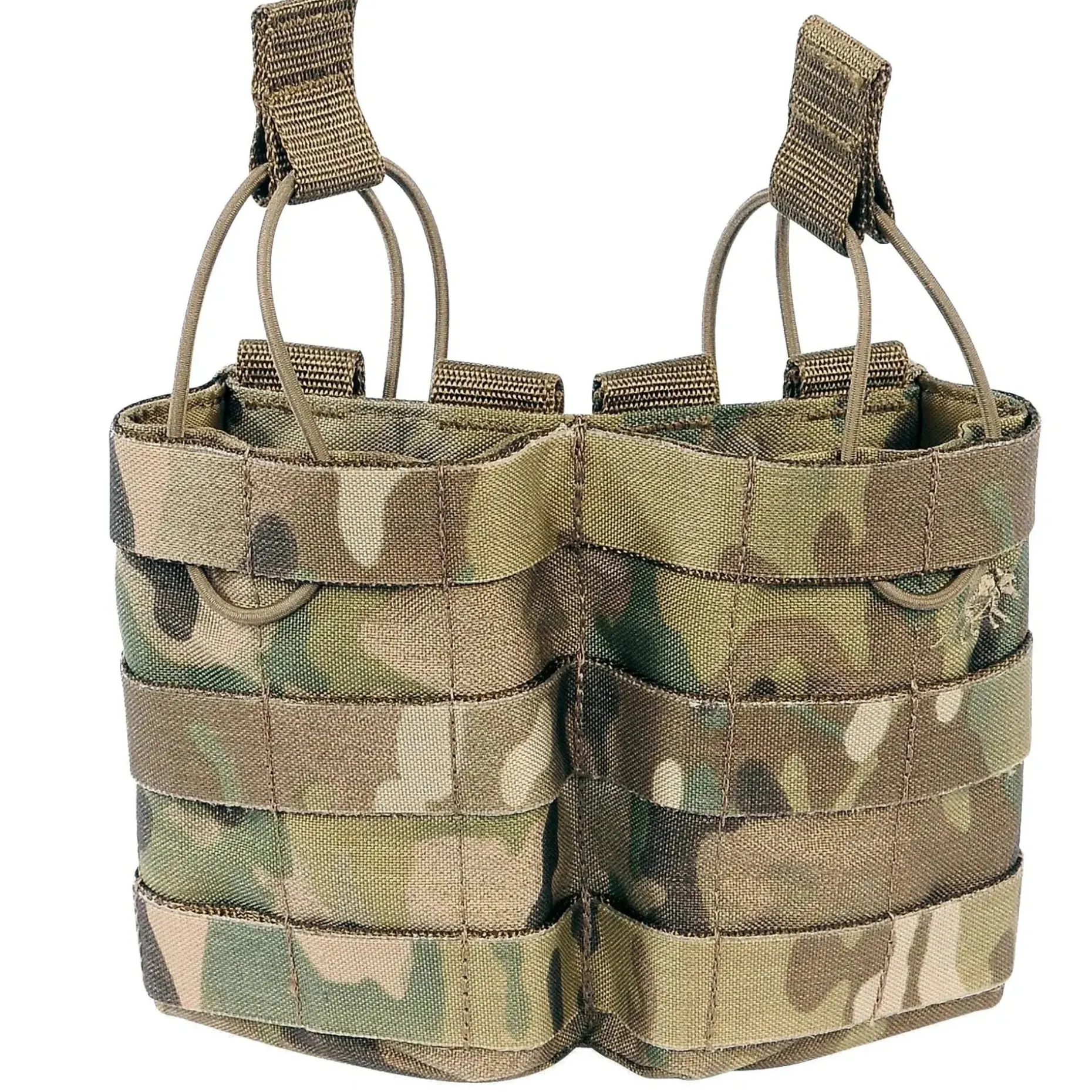 Kurze Magazintasche für zwei G36, AR-Magazinen, welche durch Bungee-Cord gesichert werden.