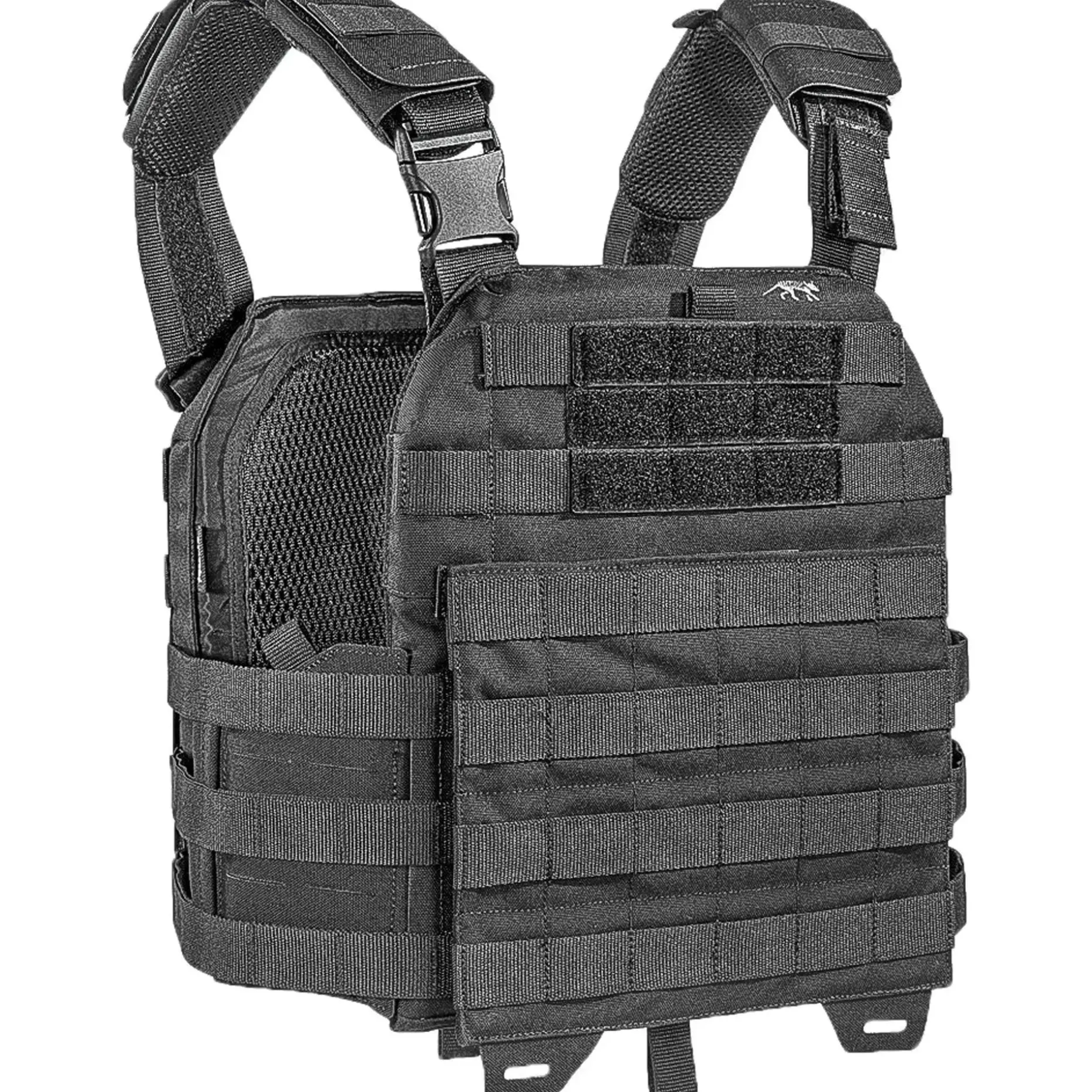 Der leichte Tasmanian Tiger Plattenträger Plate Carrier MKIV verfügt über einen abnehmbaren Frontpanel. Dieser kann bestückt und dann nach Bedarf wieder angebracht werden. Der Plattenträger ist verfügbar in zwei Größen, welche Platz für unterschiedliche Schutzplatten bieten. Das flexible Abwurfsystem ist für schnelles Ausziehen mit einer QR-Schließe versehen, welche rechts oder links montiert werden kann. Ein kräftiger Zug öffnet den Verschluss ohne großen Aufwand. Um den optimalen Tragekomfort zu erreichen, sind sowohl die gepolsterten Träger als auch die Seitenflügel in der Größe verstellbar. Molleflächen an Front und Seitenteilen runden den MKIV ab.