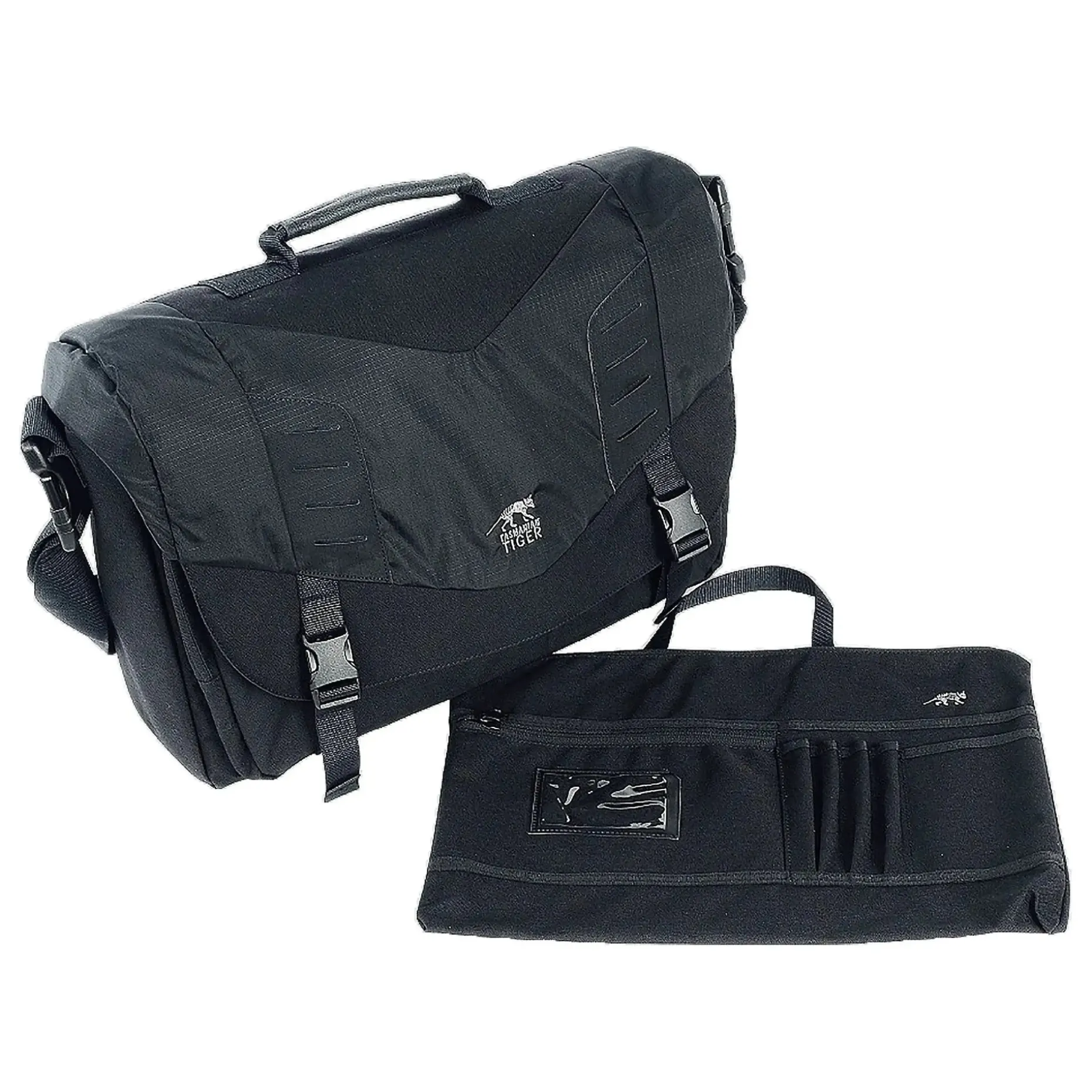 Eine verdeckte MOLLE-Leiste erweitert die Organisationsmöglichkeiten, ohne den zivilen Charakter zu beeinträchtigen. Mehrere Fächer, darunter ein Frontfach mit herausnehmbarem Organizer, eine Seitentasche, ein Rückseiten-Reißverschlussfach sowie eine Reißverschluss-Fronttasche mit elastischem Einsatz, sorgen für strukturierte Ordnung. Der längenverstellbare, abnehmbare Schultergurt mit Polster bietet hohen Tragekomfort, ergänzt durch einen rutschfesten Handgriff und einen integrierten Schlüsselhalter. Robust gefertigt aus Cordura® 700 und T-Square Rip, ist die Tac Case auf den täglichen Einsatz ausgelegt.