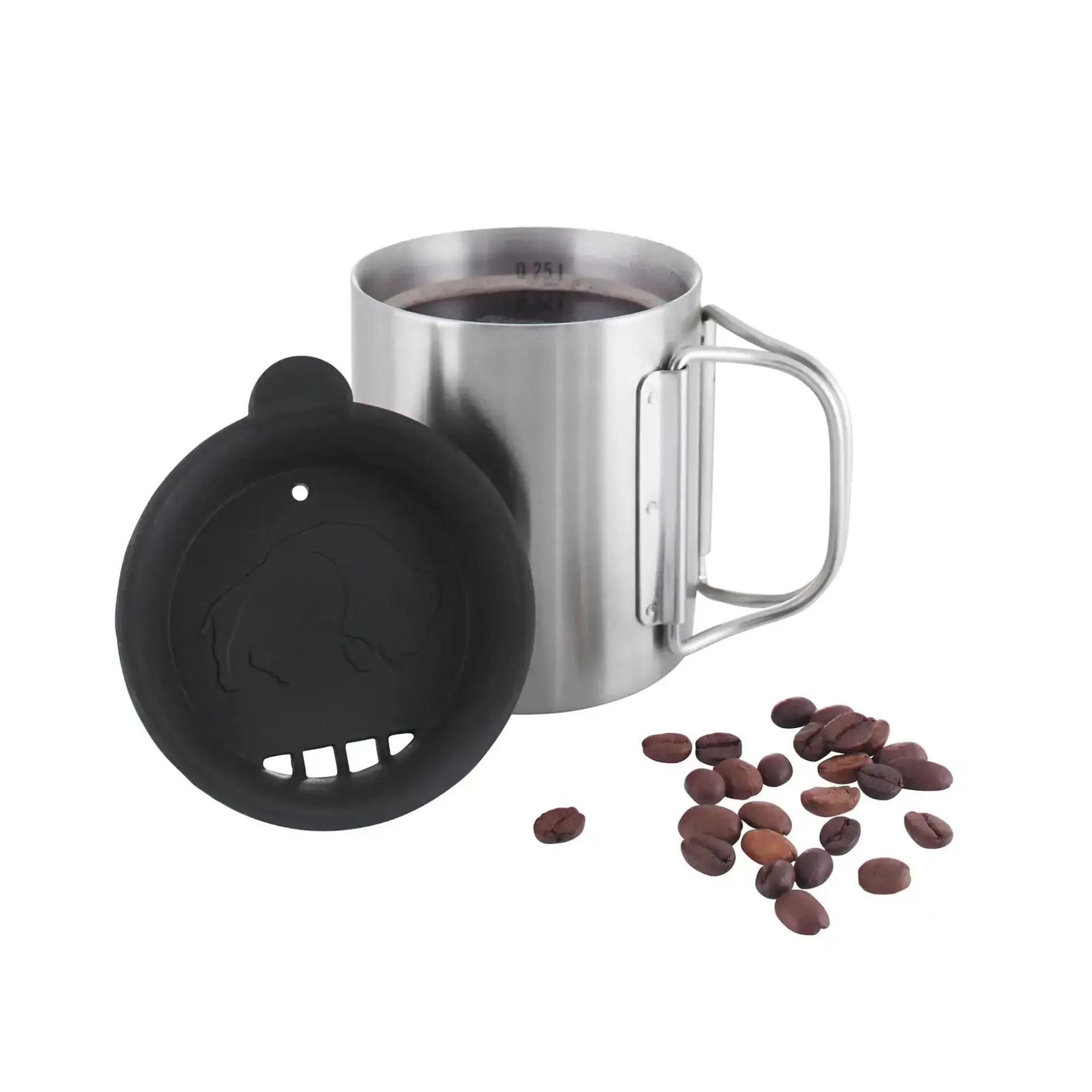 Der klappbare Henkel ermöglicht ein platzsparendes Verstauen im Rucksack. Eine Volumenskalierung im Inneren erleichtert das Abmessen von Flüssigkeiten. Der mitgelieferte Deckel aus Polypropylen verbessert zusätzlich die Isolierleistung und schützt vor Verschütten. Robust, langlebig und leicht zu reinigen – ein funktionaler Begleiter für unterwegs.