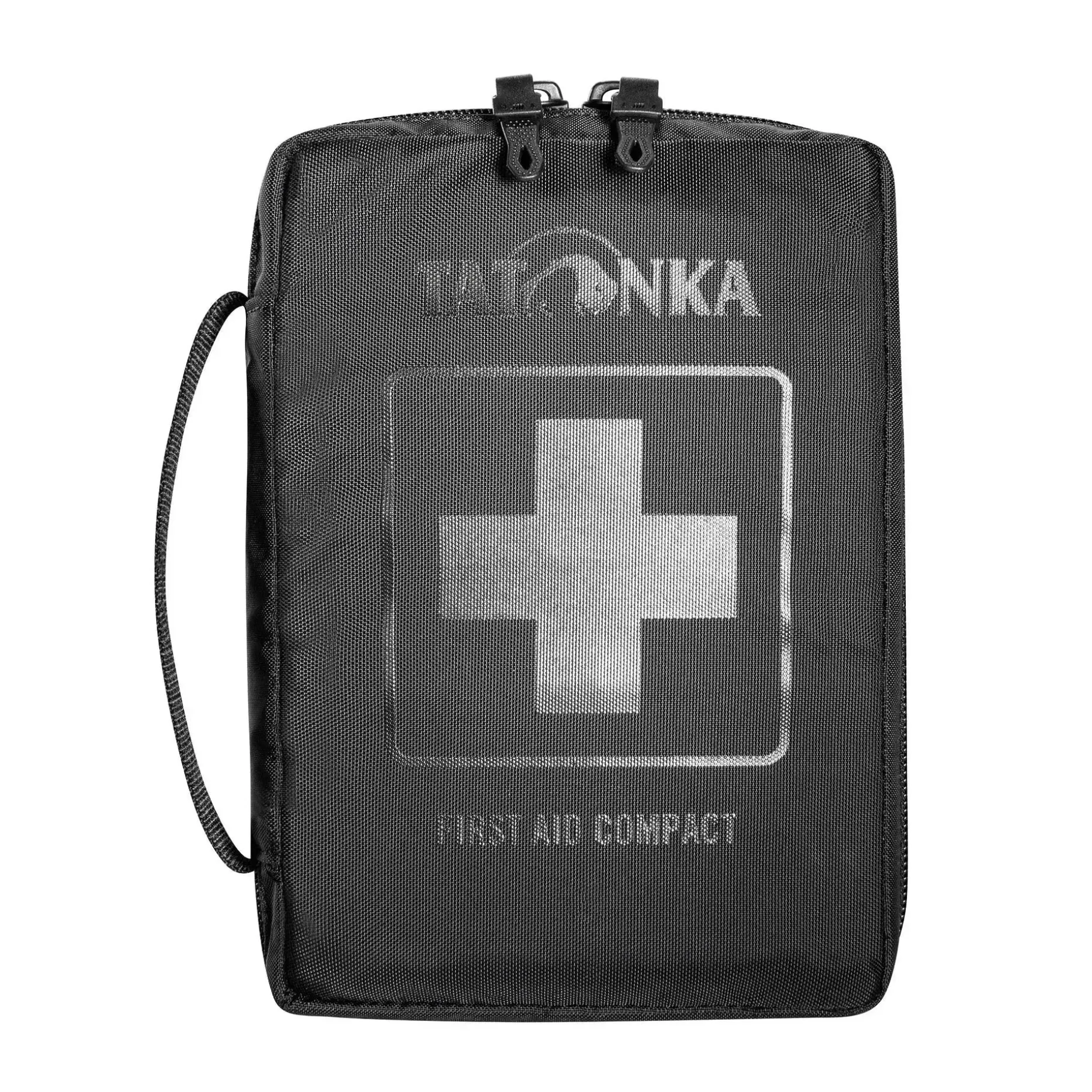 Das Tatonka First Aid Kit Compact eignet sich perfekt für ein bis zwei Personen, die einen Ausflug zwischen ein und drei Tagen planen. Die Erste Hilfe-Tasche mit Handgriff bietet ein unterteiltes Hauptfach, welches mit einem umlaufenden Reißverschluss gesichert wird. Hierin befinden sich beispielsweise eine Checkliste, die Sie vor der Tour durchgehen können, und ein Spickzettel, der die wichtigsten Regeln zur Erstversorgung in der Natur auflistet. Das Set kann im Rucksack verstaut oder dank der sich auf der Rückseite befindlichen Hypalon-Schlaufe sowohl vertikal wie auch horizontal am Gürtel befestigt werden. Das Material macht es reißfest und wasserundurchlässig.