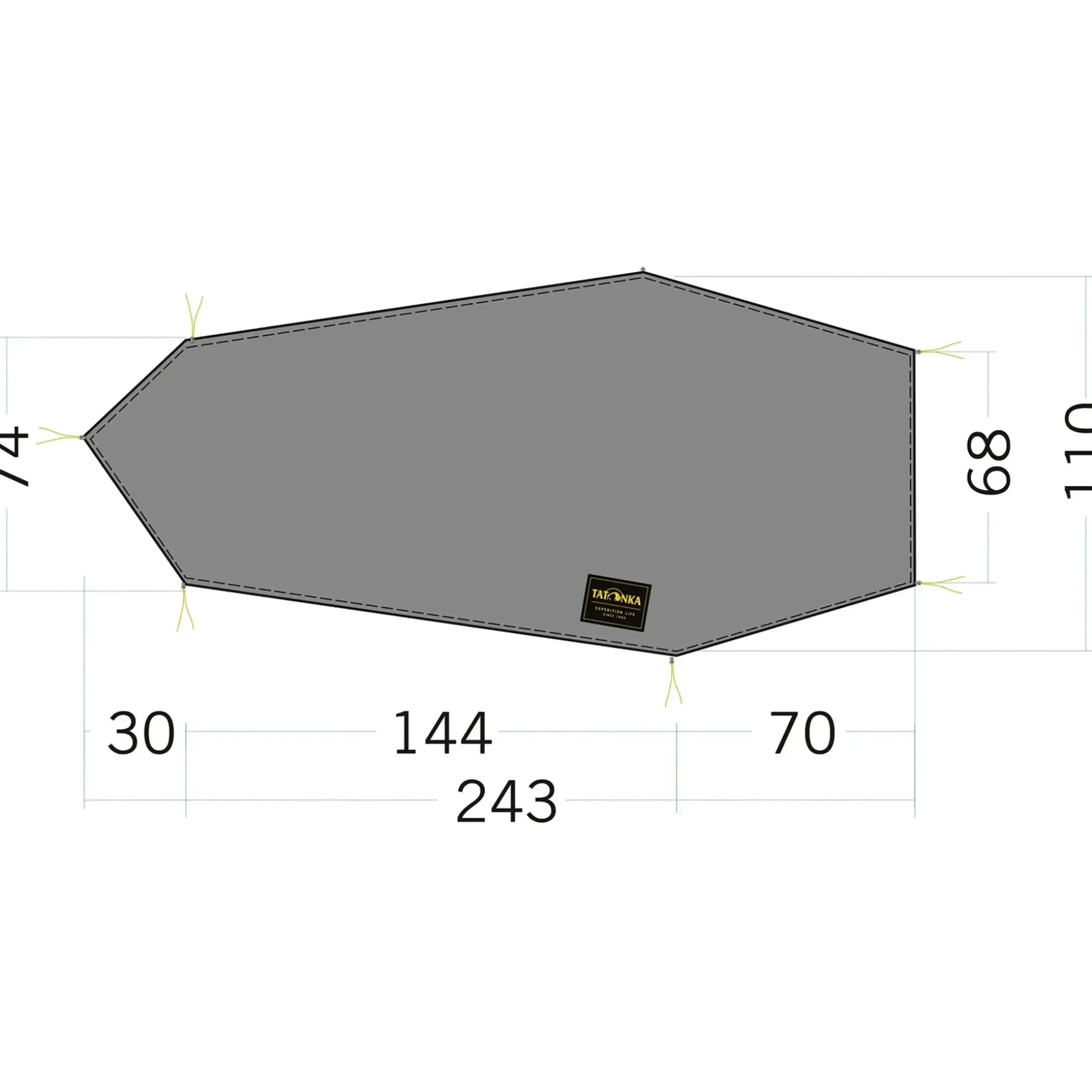– Zeltunterlage: 243 x 68 / 110 cm