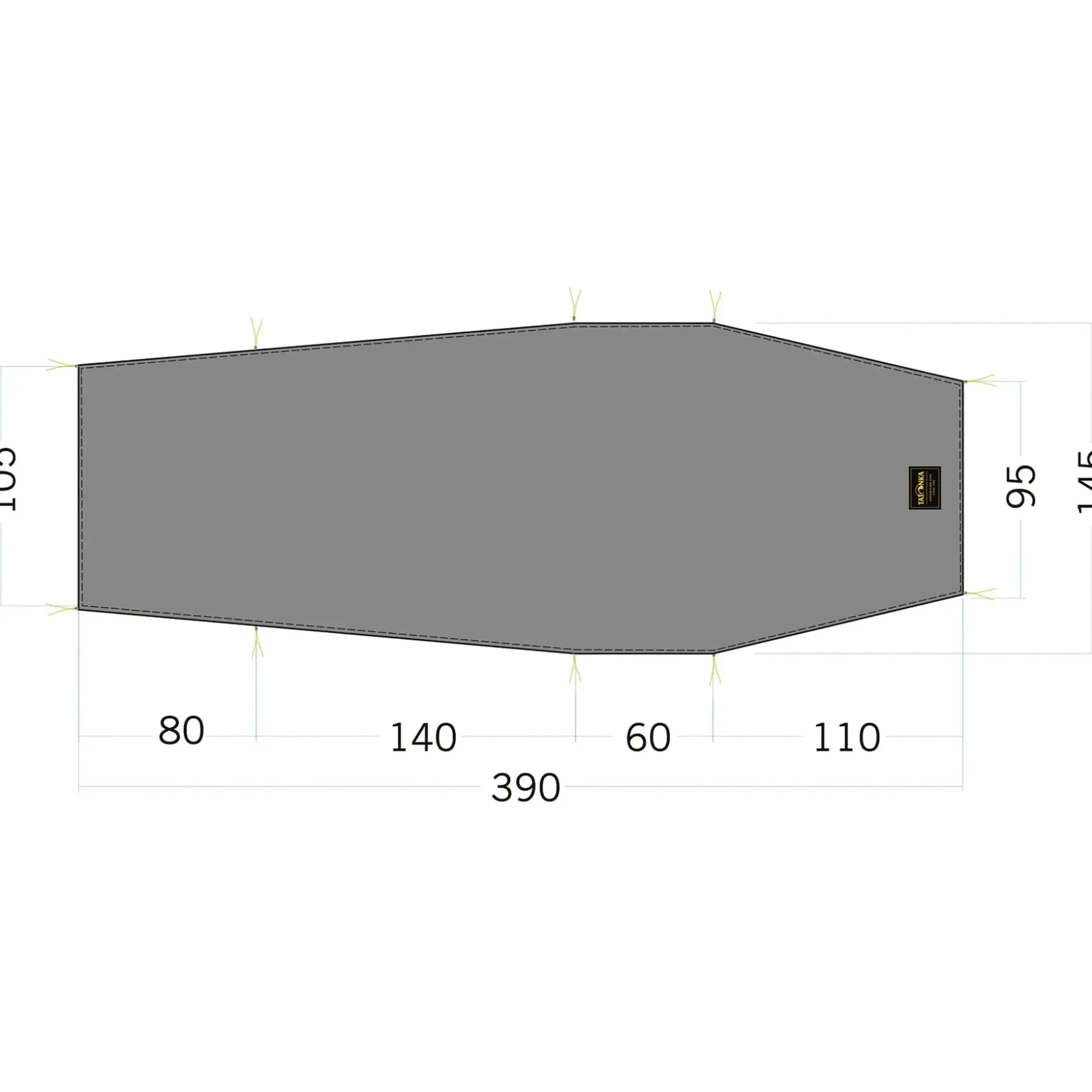 – Zeltunterlage: 390 x 95 / 145 cm