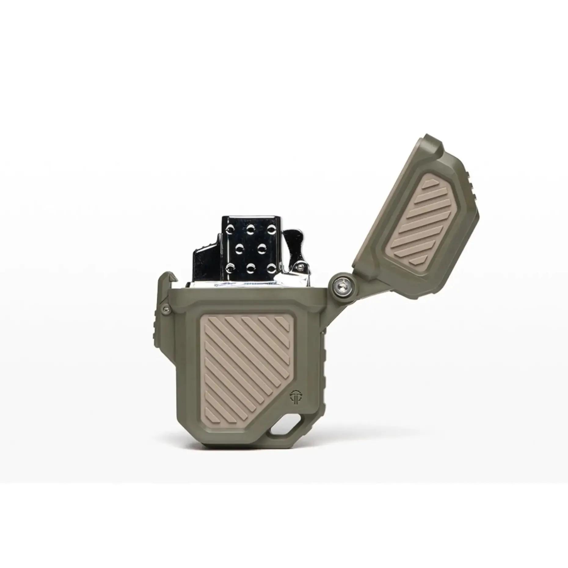 Die Armor ist mit Zippo®-Feuerzeug-Einsätzen kompatibel, sowohl für Butan- als auch für Flüssigkraftstoff-Versionen (diese sind nicht im Lieferumfang enthalten). Sie ist mit einer rostfreien Stahlscherensprungfeder und einer Achse ausgestattet, die ein zuverlässiges Öffnen mit nur einer Hand ermöglichen. Der große Lanyard-Haken sorgt dafür, dass Du Dein Feuerzeug sicher an Deinem Equipment befestigen kannst, so dass es immer griffbereit ist, egal wo Du Dich gerade befindest.