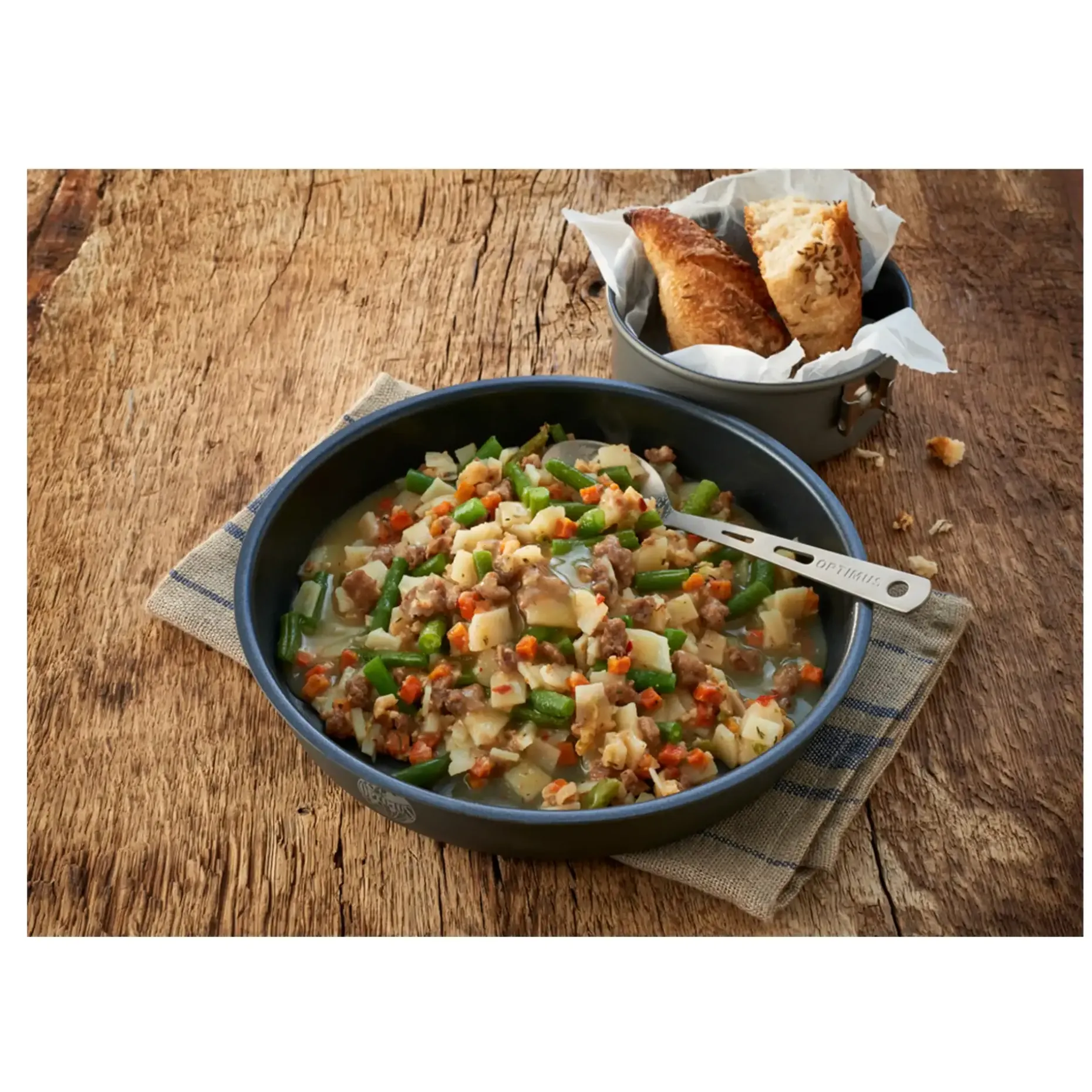 Der Trek’N Eat Deftiger Kartoffeleintopf mit Rind und Bohnen überzeugt mit gutem Geschmack und langer Haltbarkeit. Er versorgt Dich mit der benötigten Energie und eignet sich sowohl für Ausflüge wie auch für die Krisenvorsorge, als Notnahrung oder als Backup im Rucksack oder Auto.