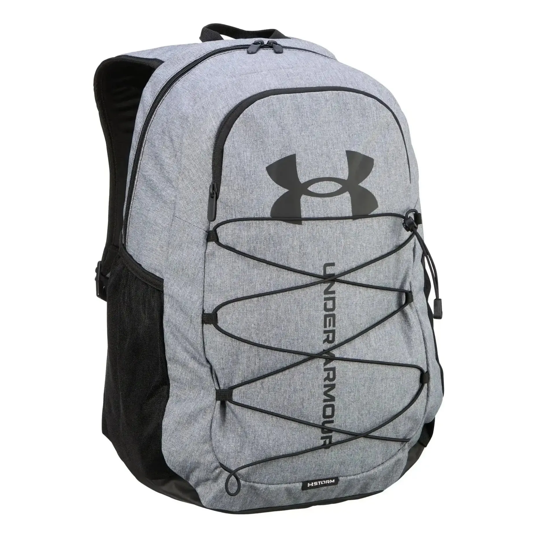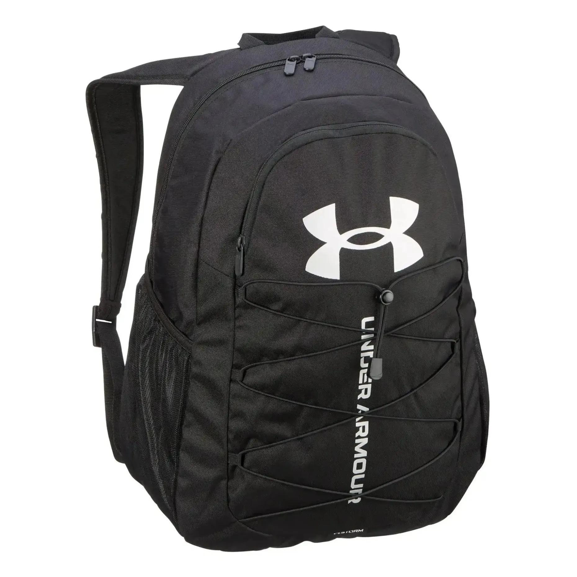 Der Under Armour Rucksack Hustle Sport ist ideal für den Alltag. Die Storm-Technologie sorgt für ein extrem wasser- und schmutzabweisendes Finish. Ein hoher Tragekomfort ergibt sich durch den gepolsterten Rückenteil und die geformten Träger. Er bietet zahlreiche Taschen, um Deine Tools oder persönliche Gegenstände zu verstauen. So ist er mit einem weich gefütterten Fach für Laptops bis zu 15 Zoll ausgestattet. Außerdem hat er an der Vorderseite eine extra Tasche mit Zip für Deine Wertsachen und zwei Seitentaschen für Wasserflaschen. Der Spannverschluss auf der Vorderseite eignet sich zum leichten Verstauen von einer Jacke, einem Paar Schuhe oder einem Ball. Das robuste, abriebfeste und beschichtete Bodenteil und der obere Henkel runden den Hustle Sport ab.