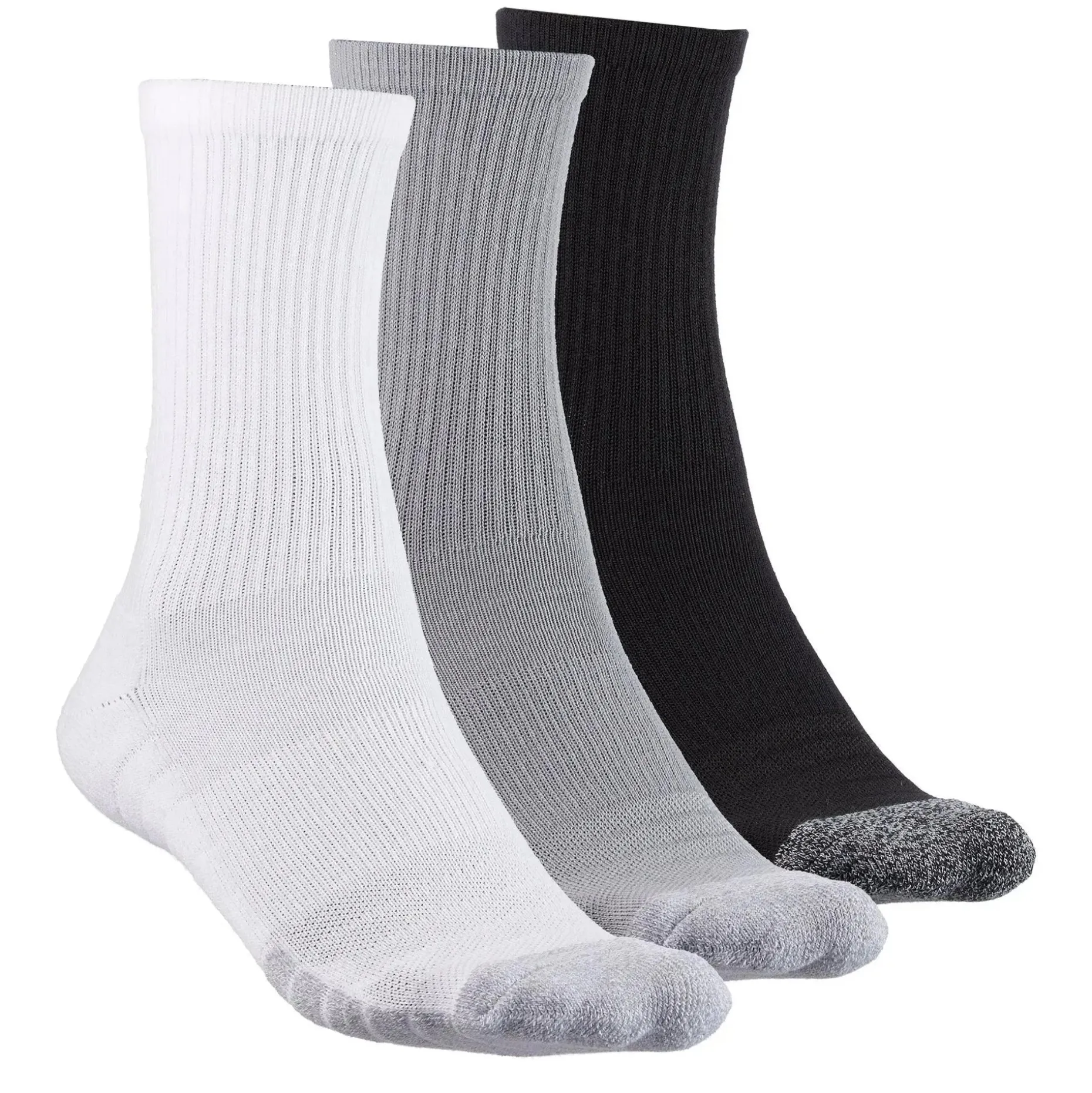 Die Under Armour Socken Heatgear Crew 3 Paare weiß grau leiten Schweiß von der Haut ab und sorgen auf diese Weise für einen hohen Tragekomfort. Während die strategische Dämpfung Flexibilität garantiert, beugt der dynamische Halt am Mittelfuß der Ermüdung des Fußes vor. Atmungsaktivität wird durch die Netzstoff-Einsätze gewährleistet.