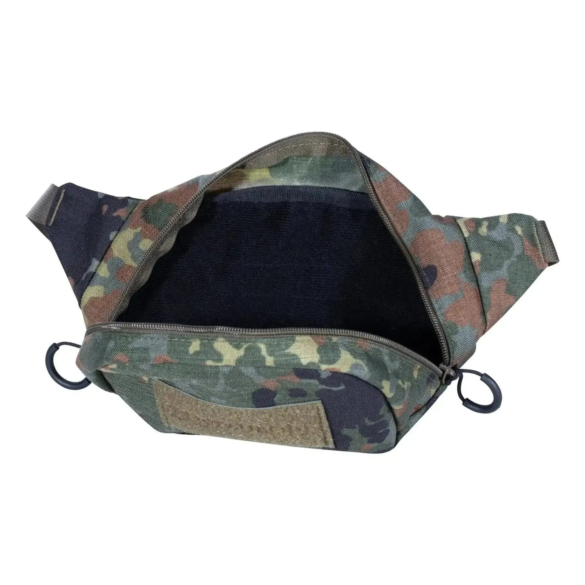 Die Zentauron Bauchtasche Covert flecktarn eignet sich für Dienst und Freizeit. Da der Innenbereich komplett mit Klettfläche ausgestattet ist, lässt dieser sich individuell gestalten, wodurch sich die Bauchtasche auch für das verdeckte Tragen von Waffen (CCW, concealed carry wear) eignet. Auf der vorderseitigen Klettfläche von 5 x 10 cm kannst Du Patches anbringen.